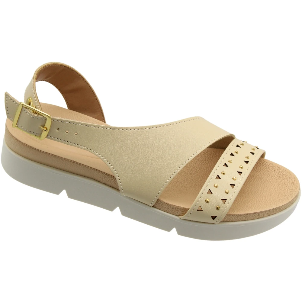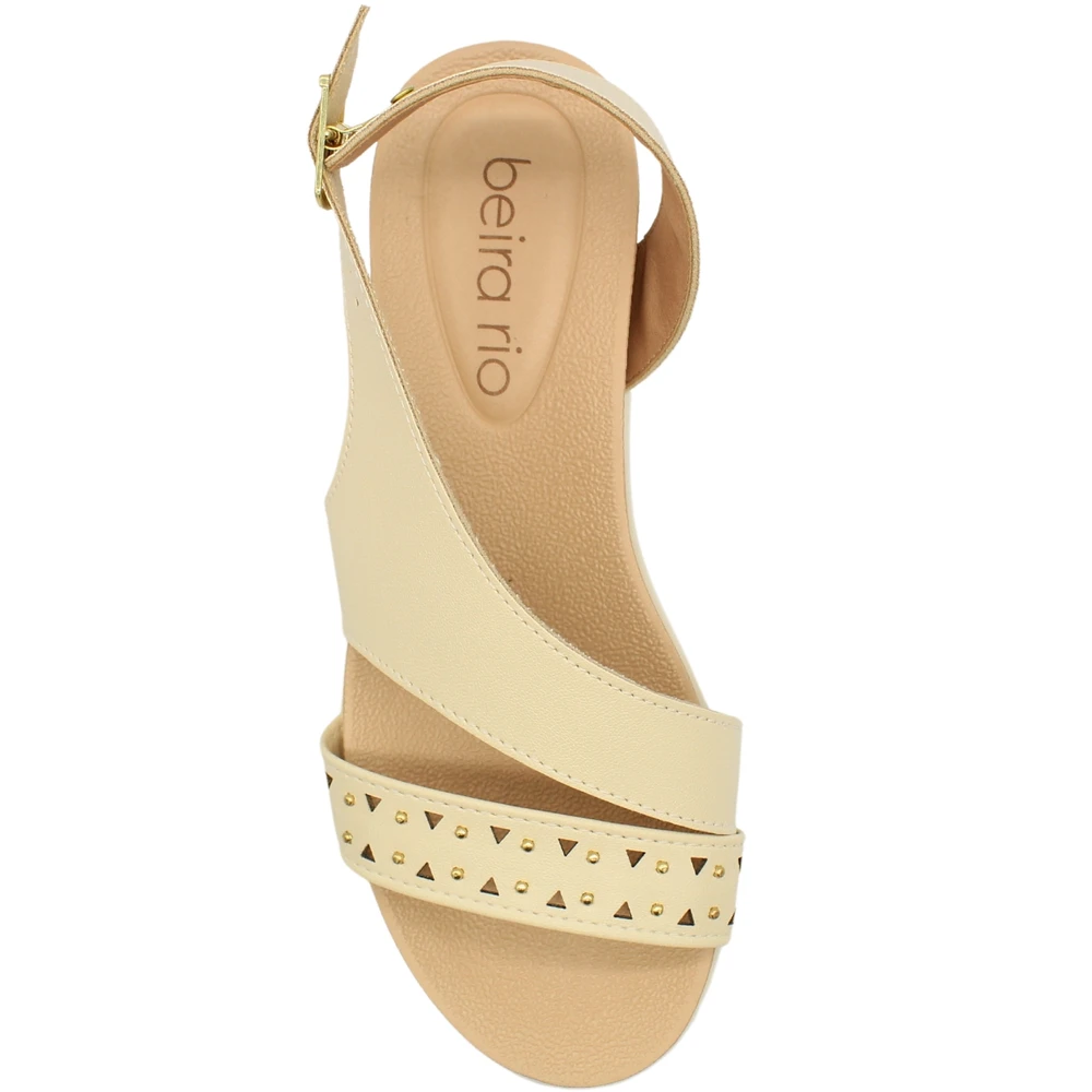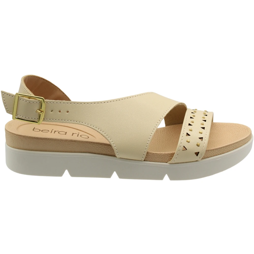 Sandália Rasteira Beira Rio Apliques Dourados Napa Turim Feminino