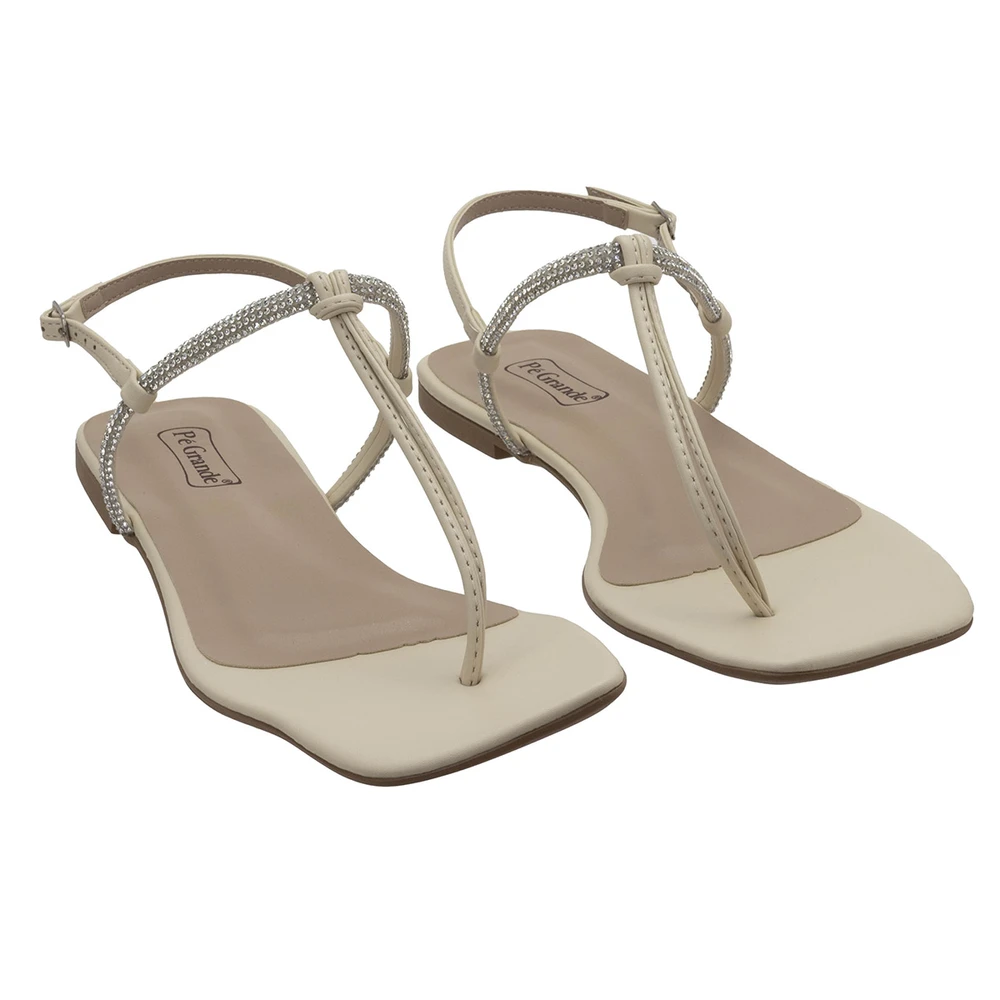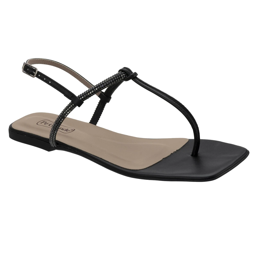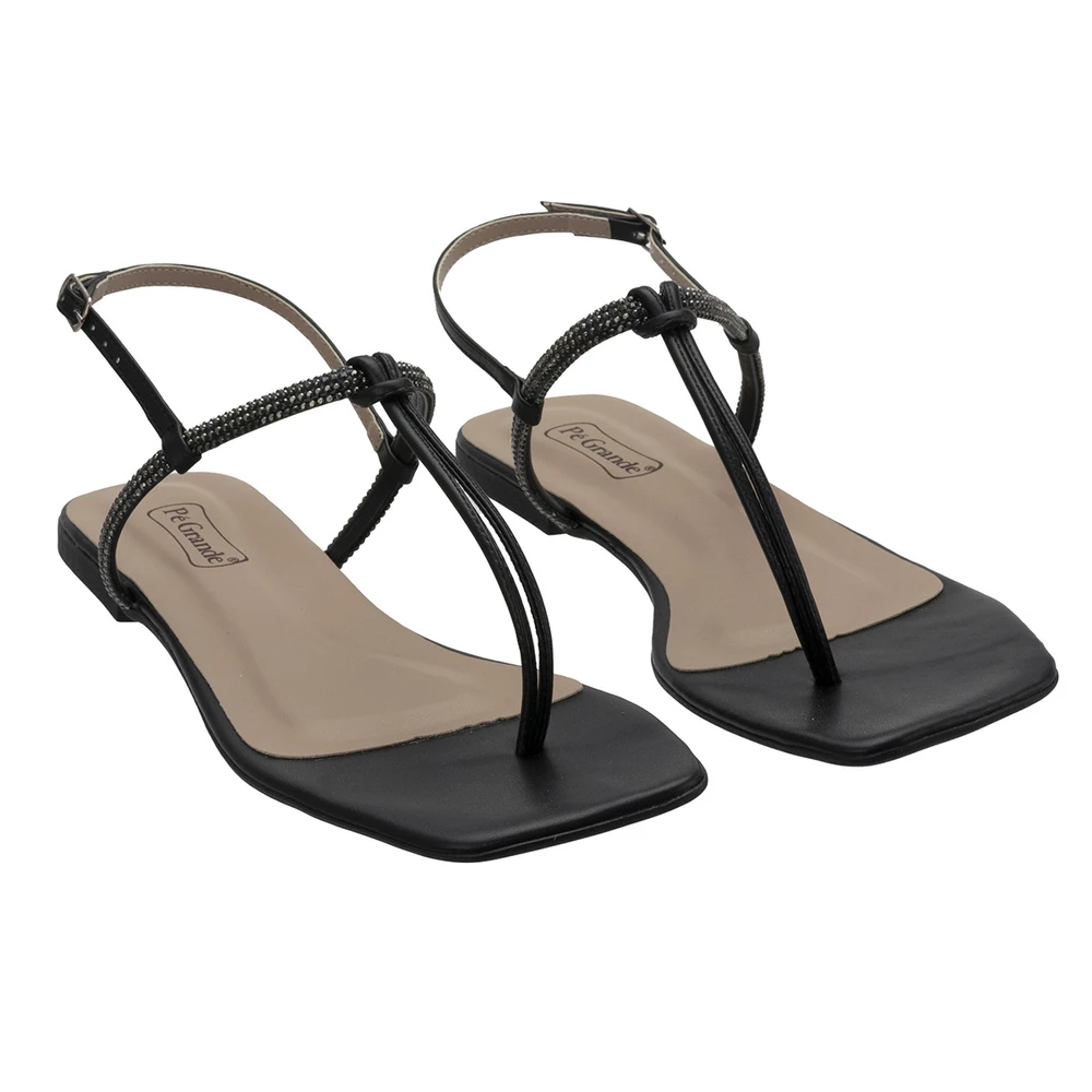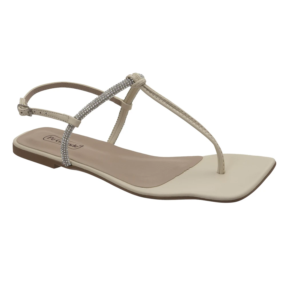 Rasteira em laminado sintético com solado em borracha antiderrapante.