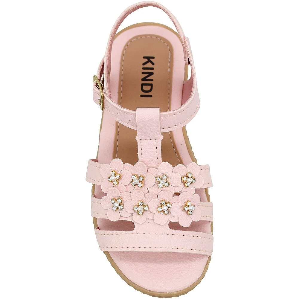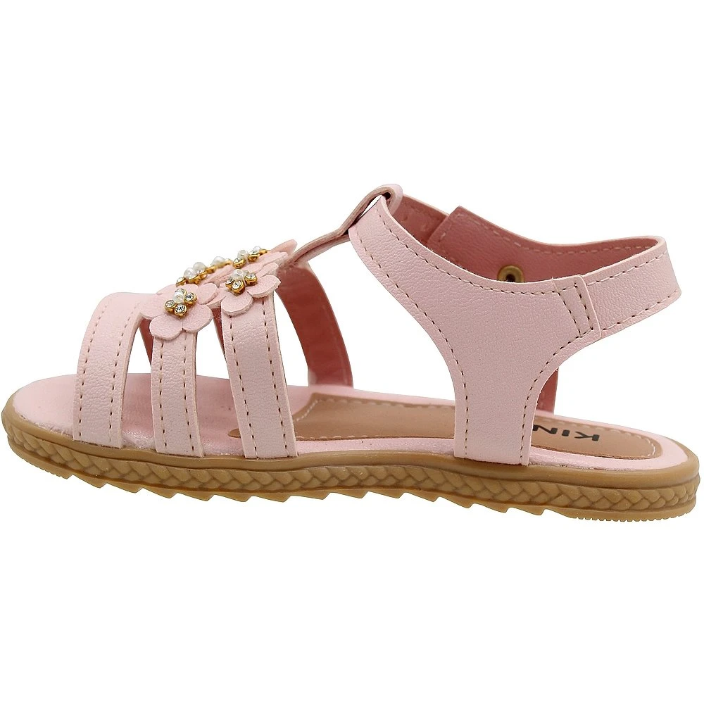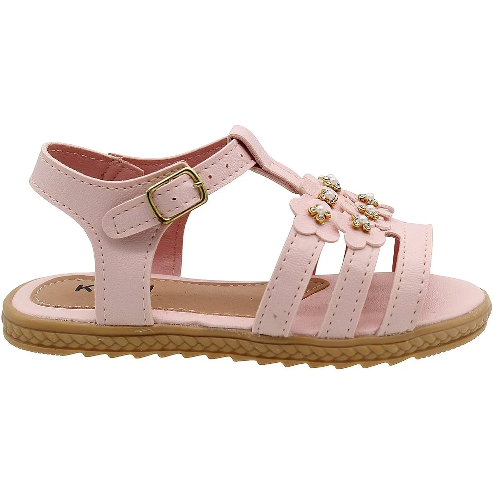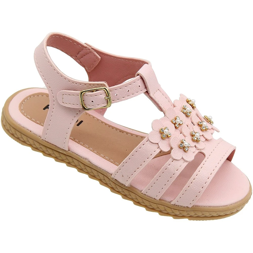 Sandália Rasteira Infantil Kindi Aplique Flores Fivela Ajustável Menina