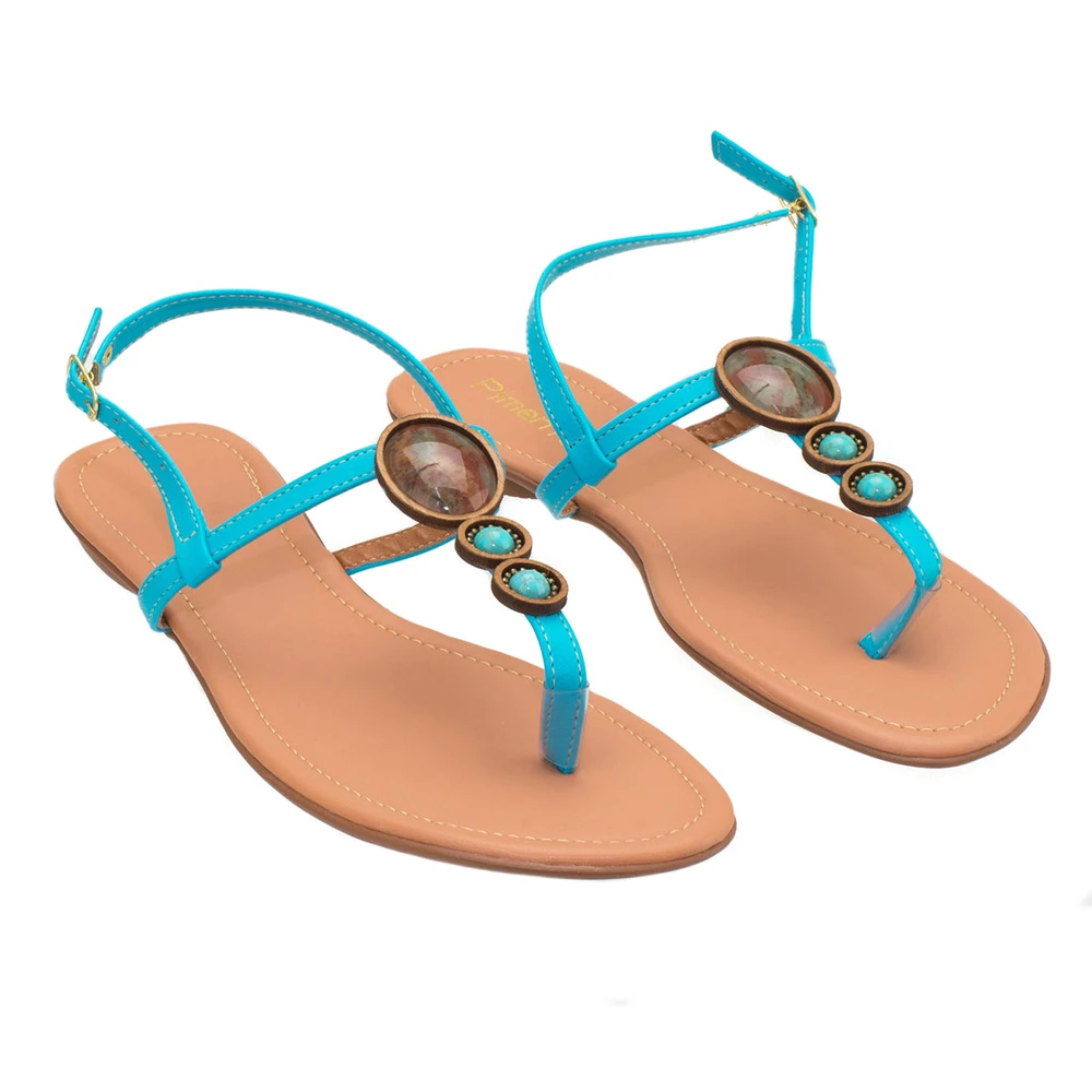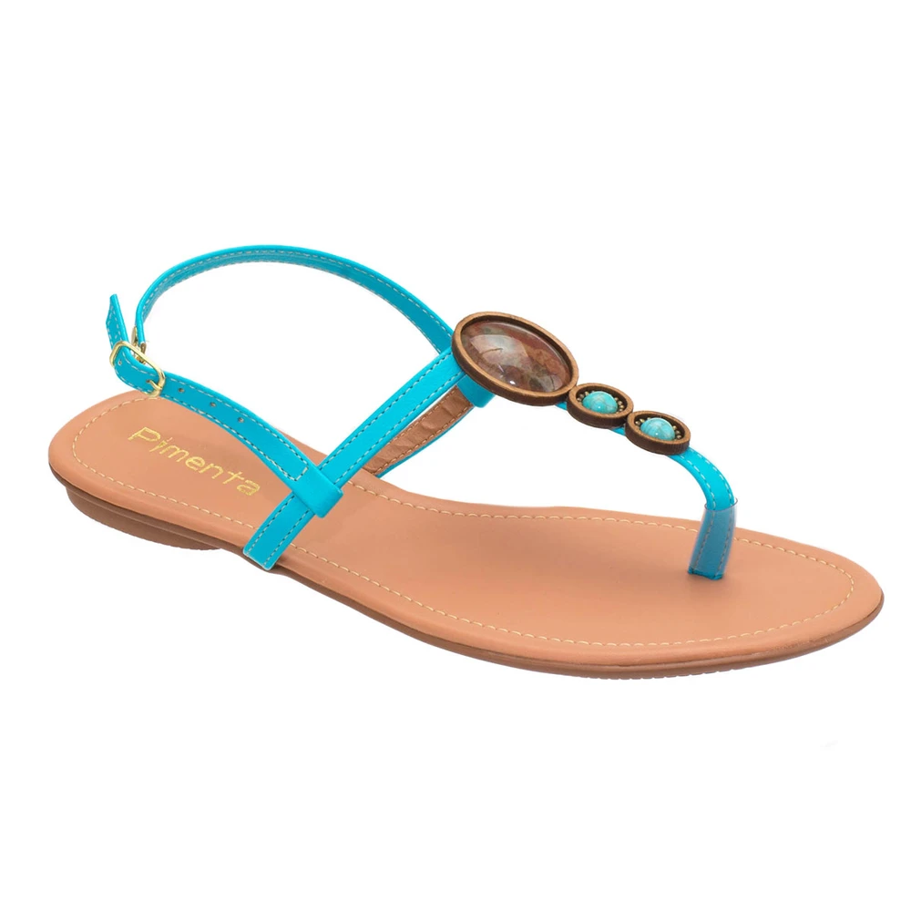 Sandália rasteira em couro ecológico com solado em borracha antiderrapante.