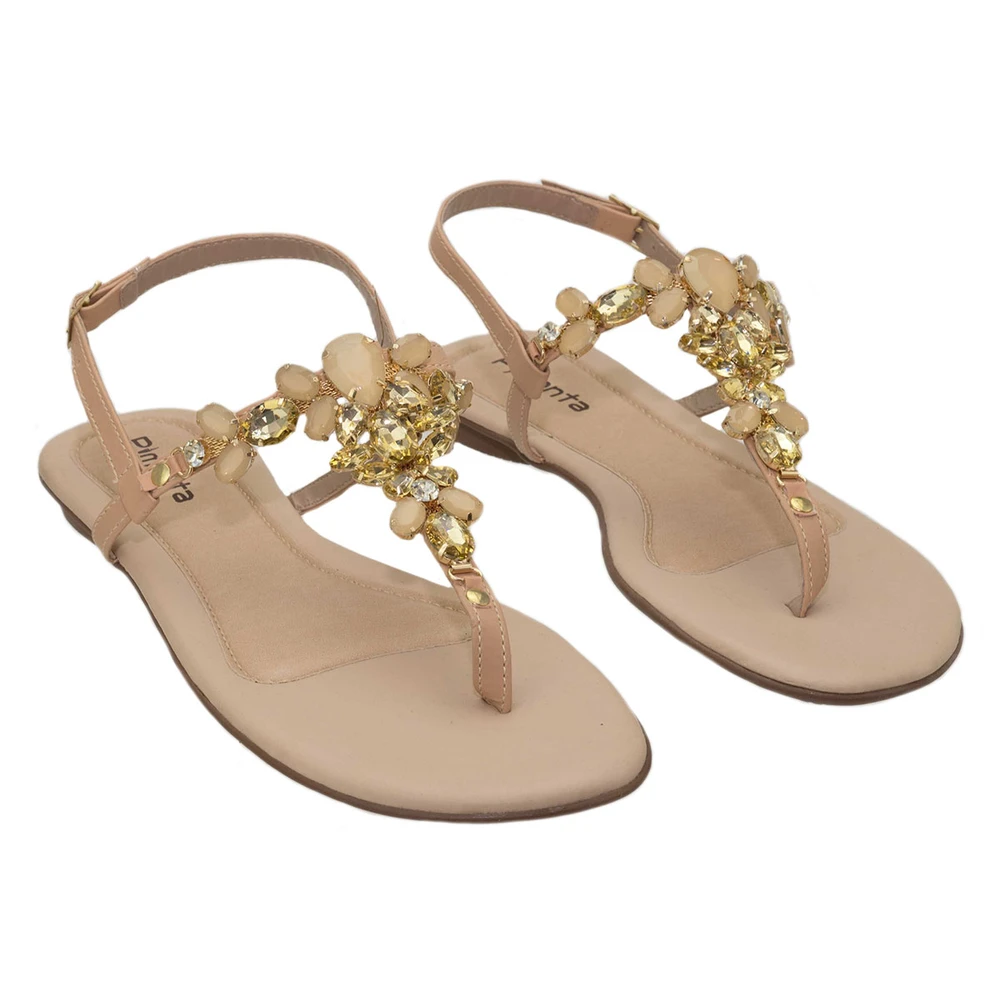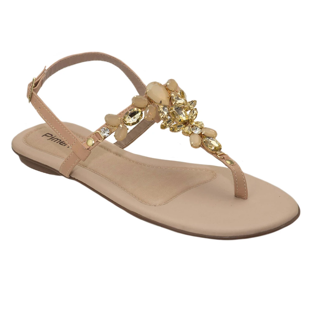 Rasteira em couro ecológico com solado em borracha antiderrapantee detalhes em pedrarias.