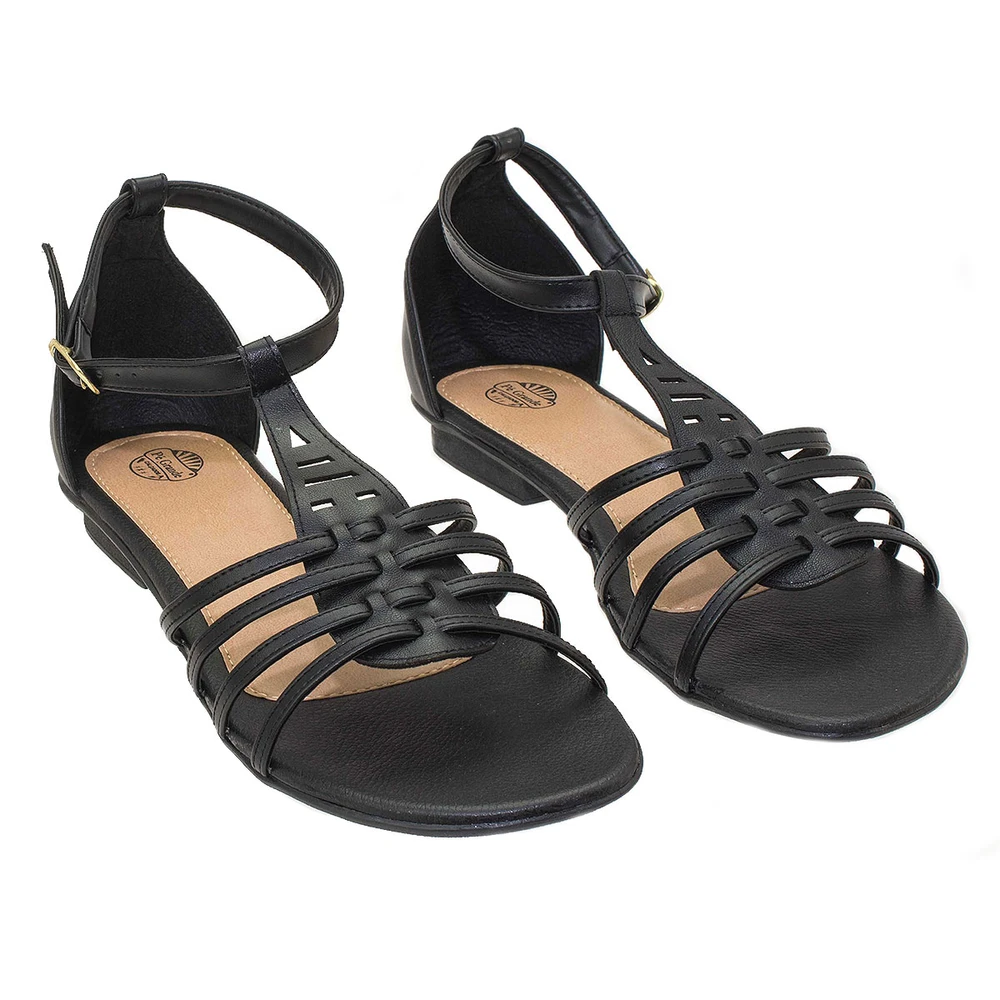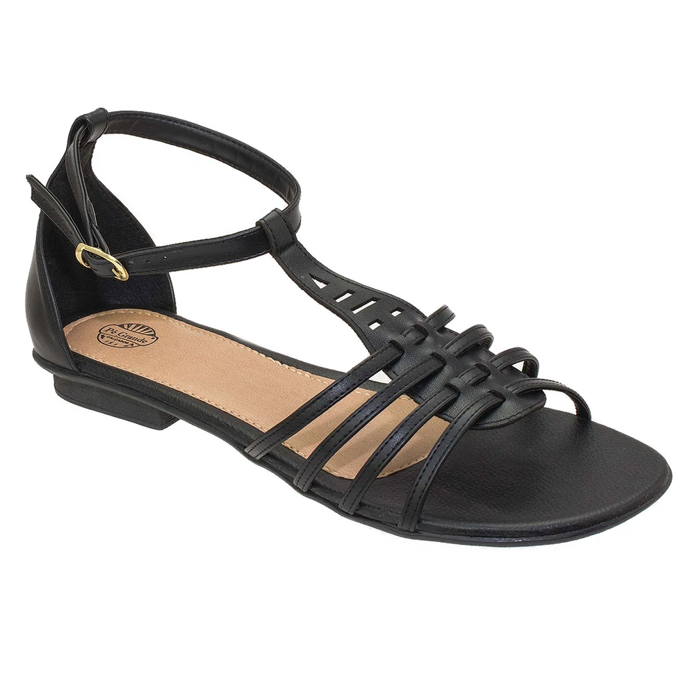 Rasteira sandália em couro ecológico com solado em borracha antiderrapante.