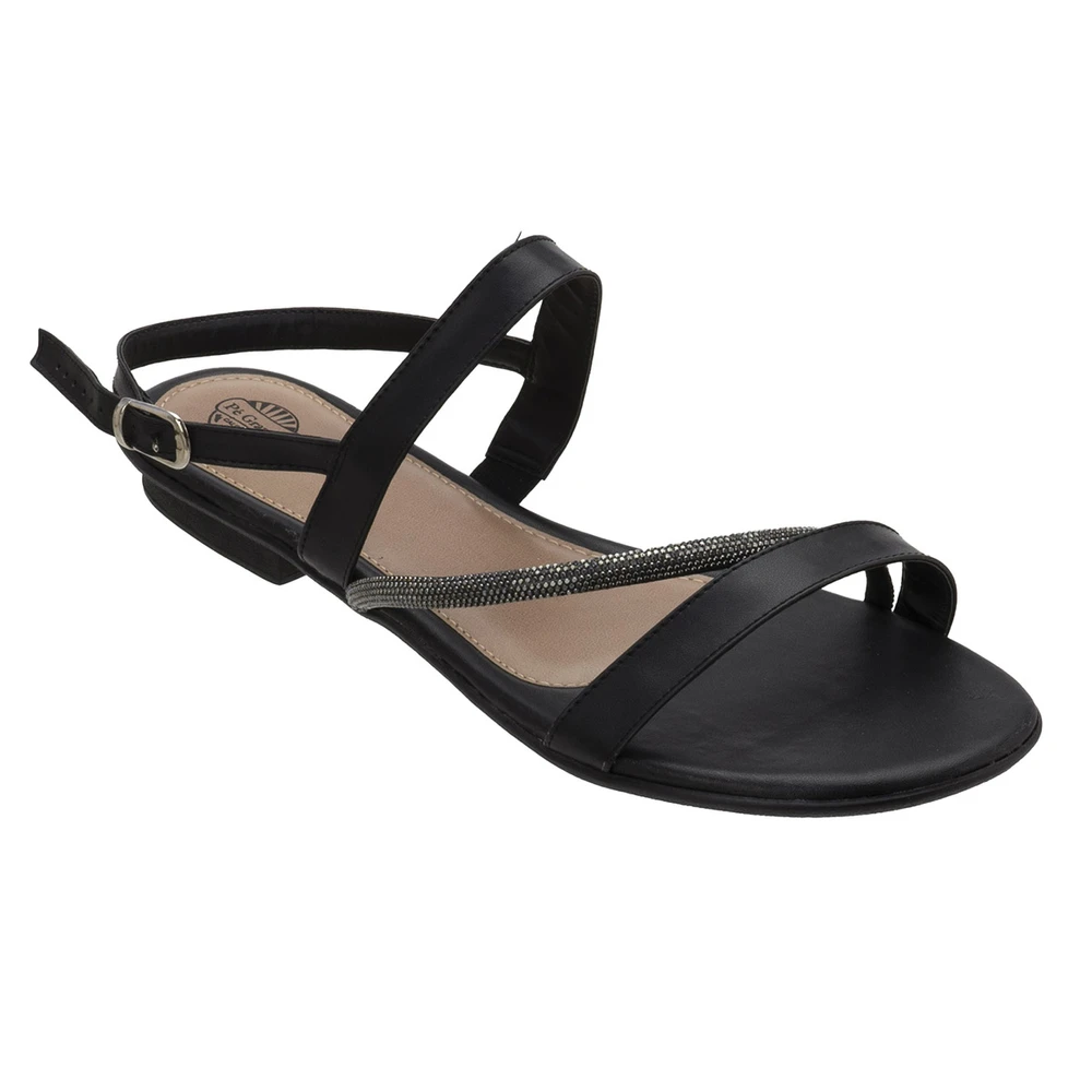 Rasteira sandália em laminado sintético com solado em borracha antiderrapante.