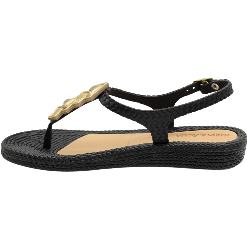 Sandália Rasteira Terra e Água Tramada Aplique Geométrico Feminino