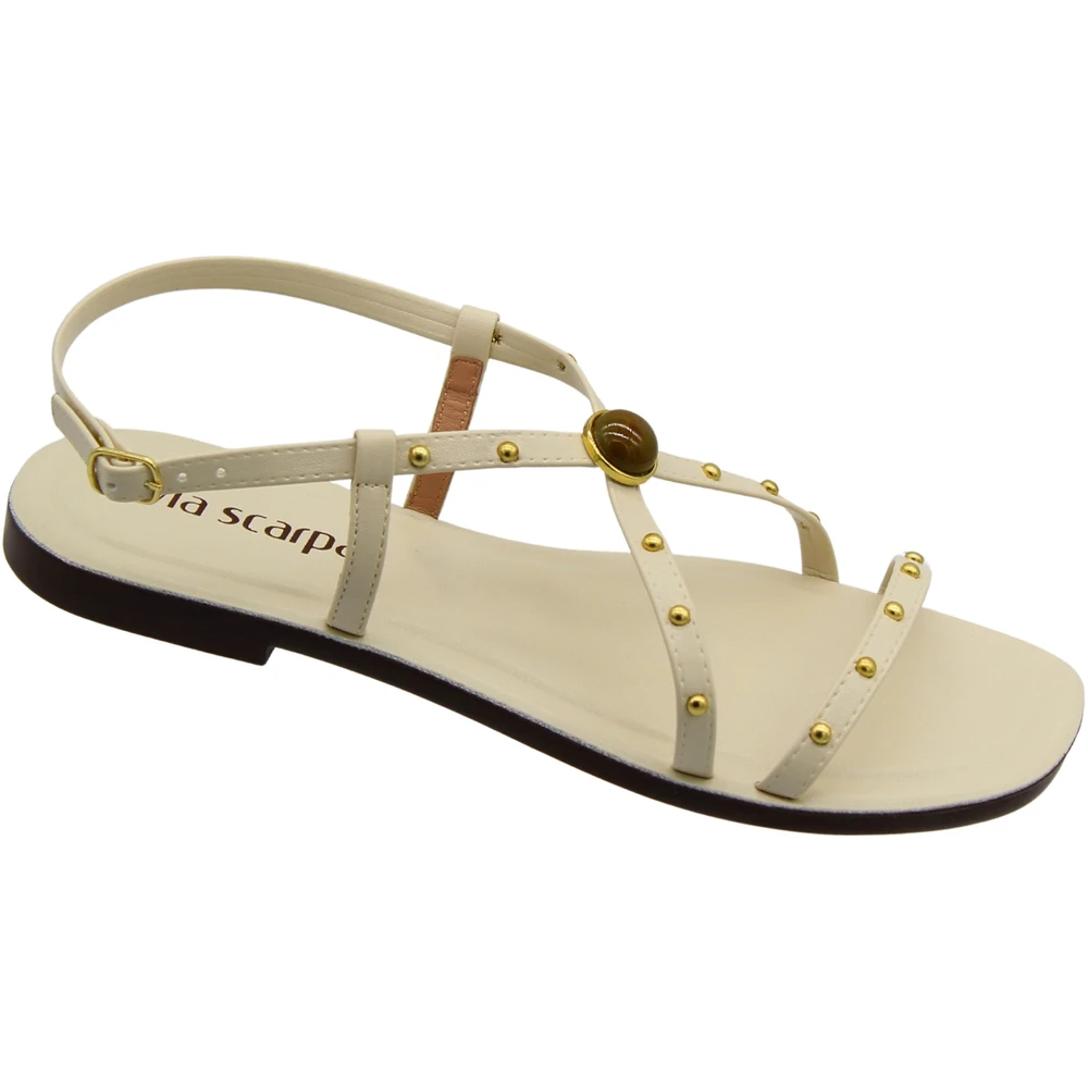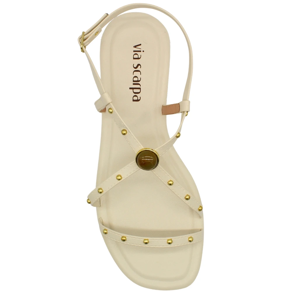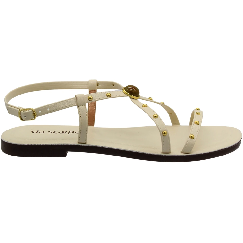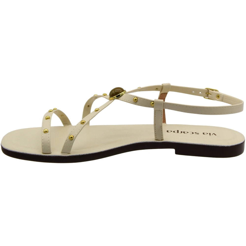 Sandália rasteira feminina Via Scarpa Adorno Em Pedra Fivela