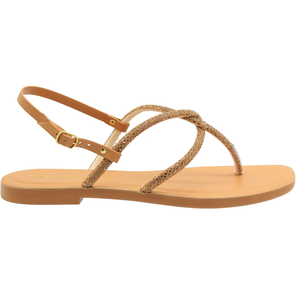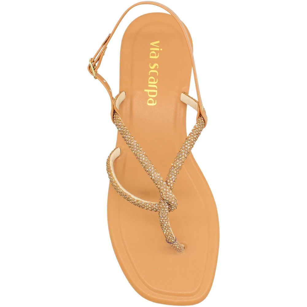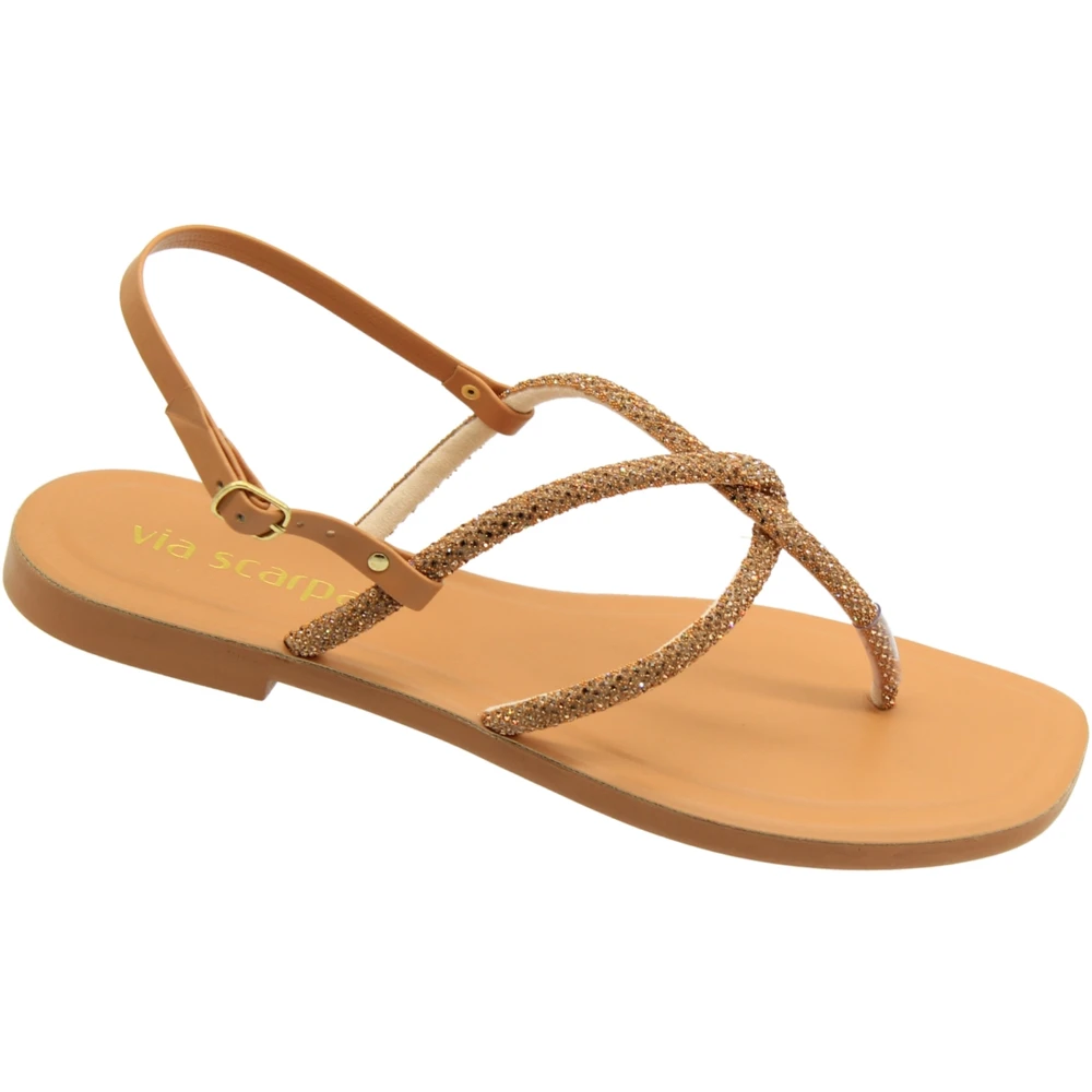 Sandália Rasteira Via Scarpa Tiras Strass Feminina