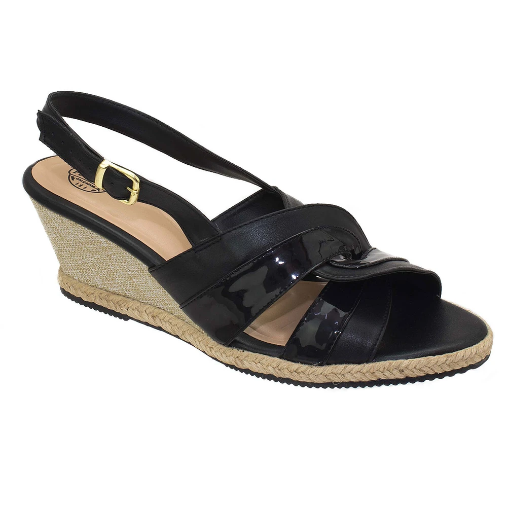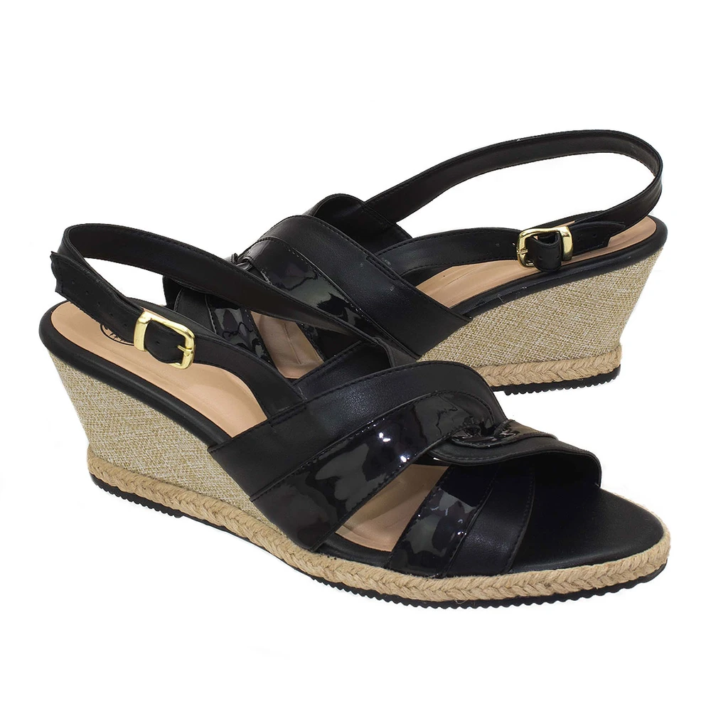 Sandália em elástico, com salto anabela de 8 cm de altura e sola emborracha.