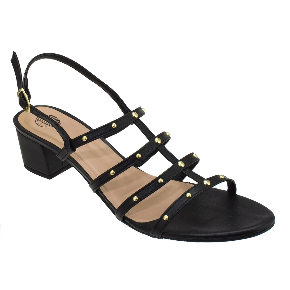 Sandália em couro ecológico com saltinho de 6 cm de altura.