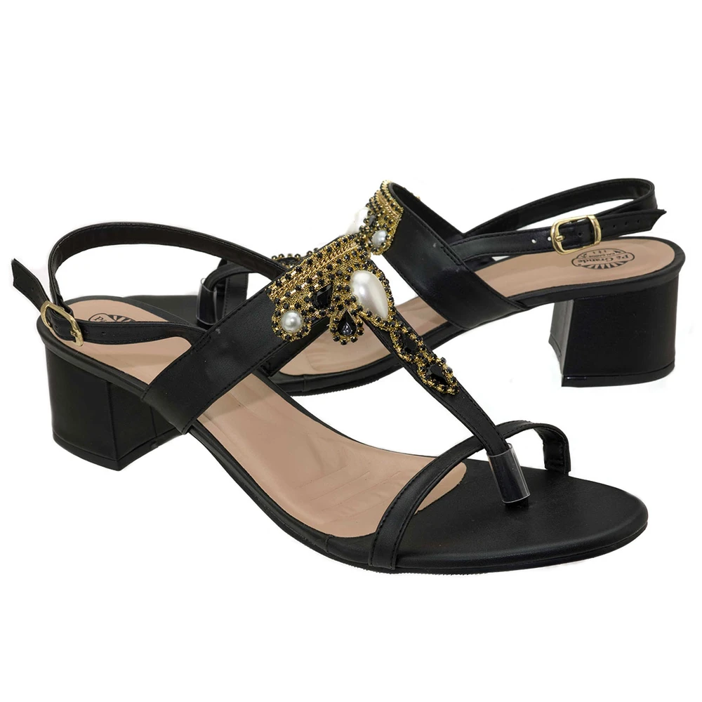 Sandália em couro ecológico com saltinho de 5 cm de altura.