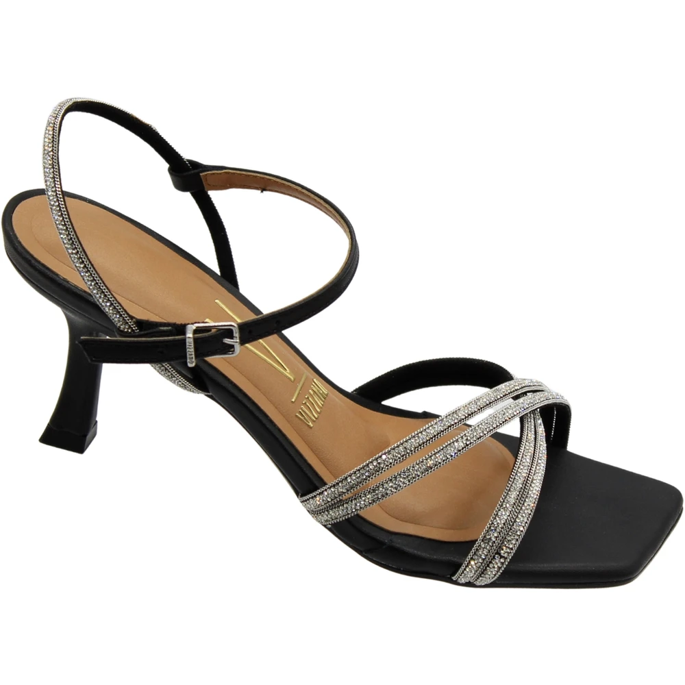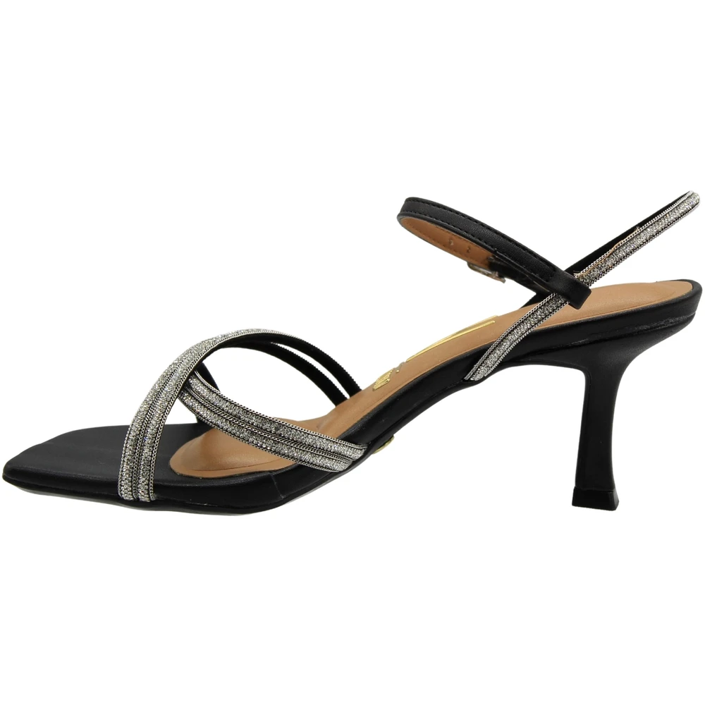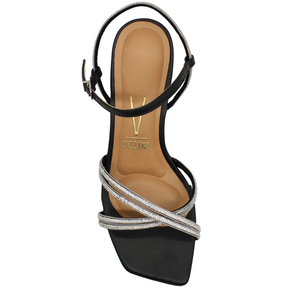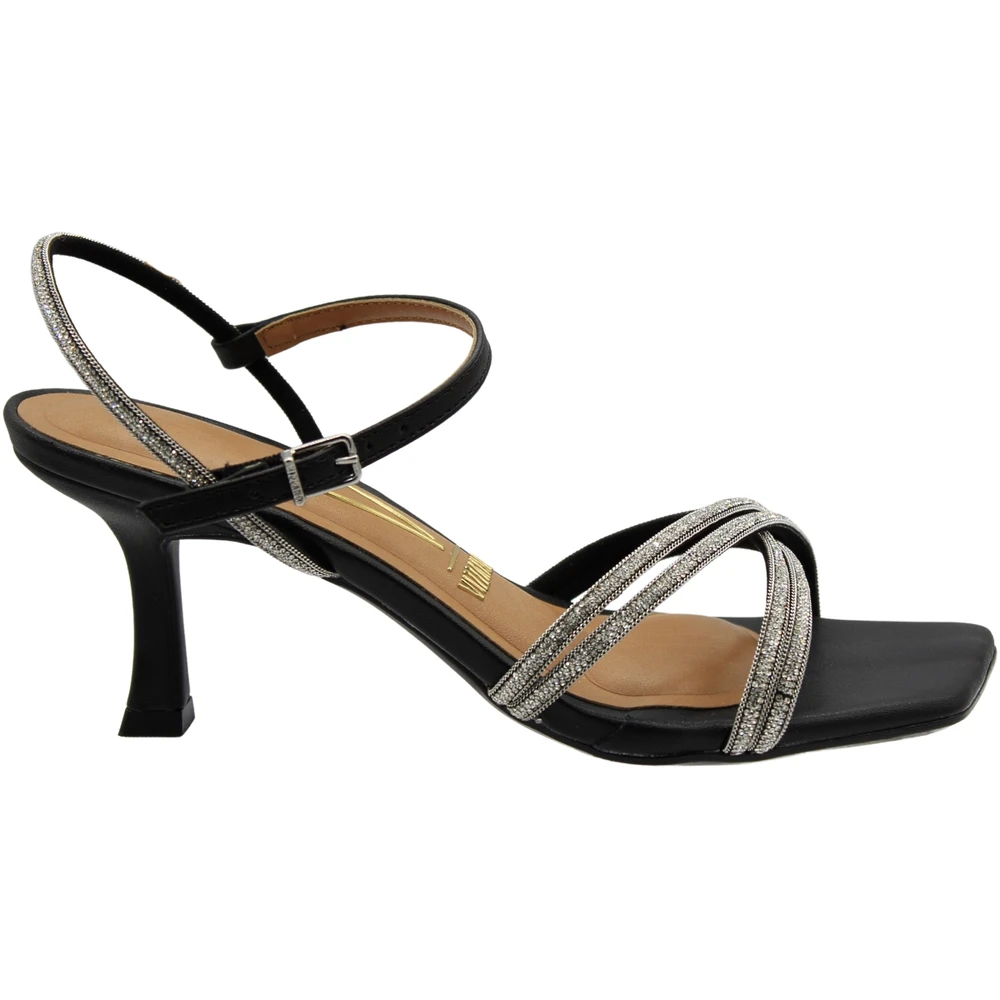 Sandália Salto Médio Vizzano Tira Dupla Cruzada Strass Feminina