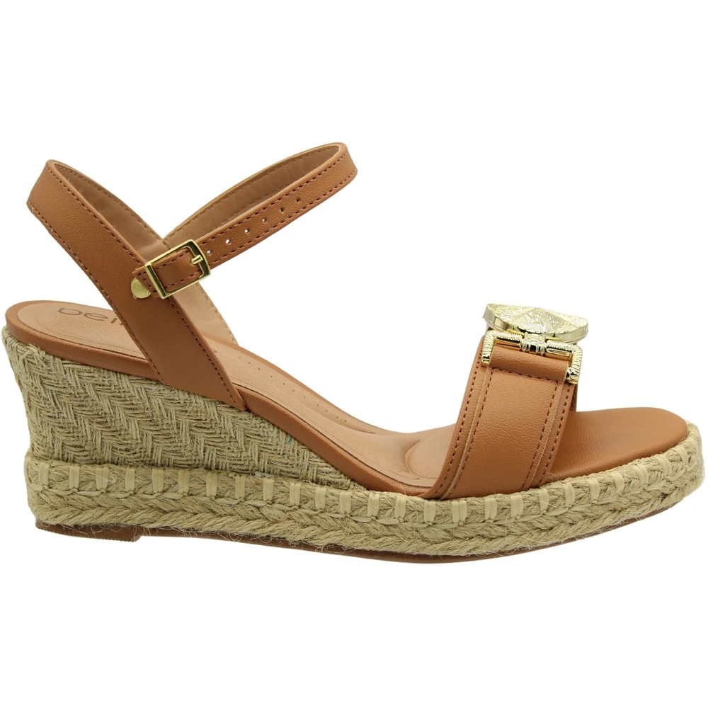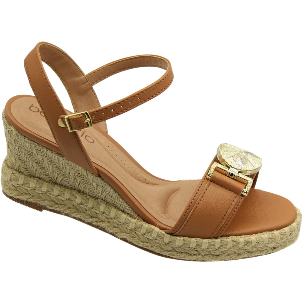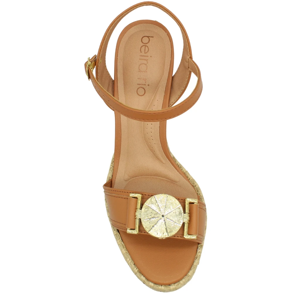 Sandália Salto Tramado Beira Rio Adorno De Medalhão Feminina