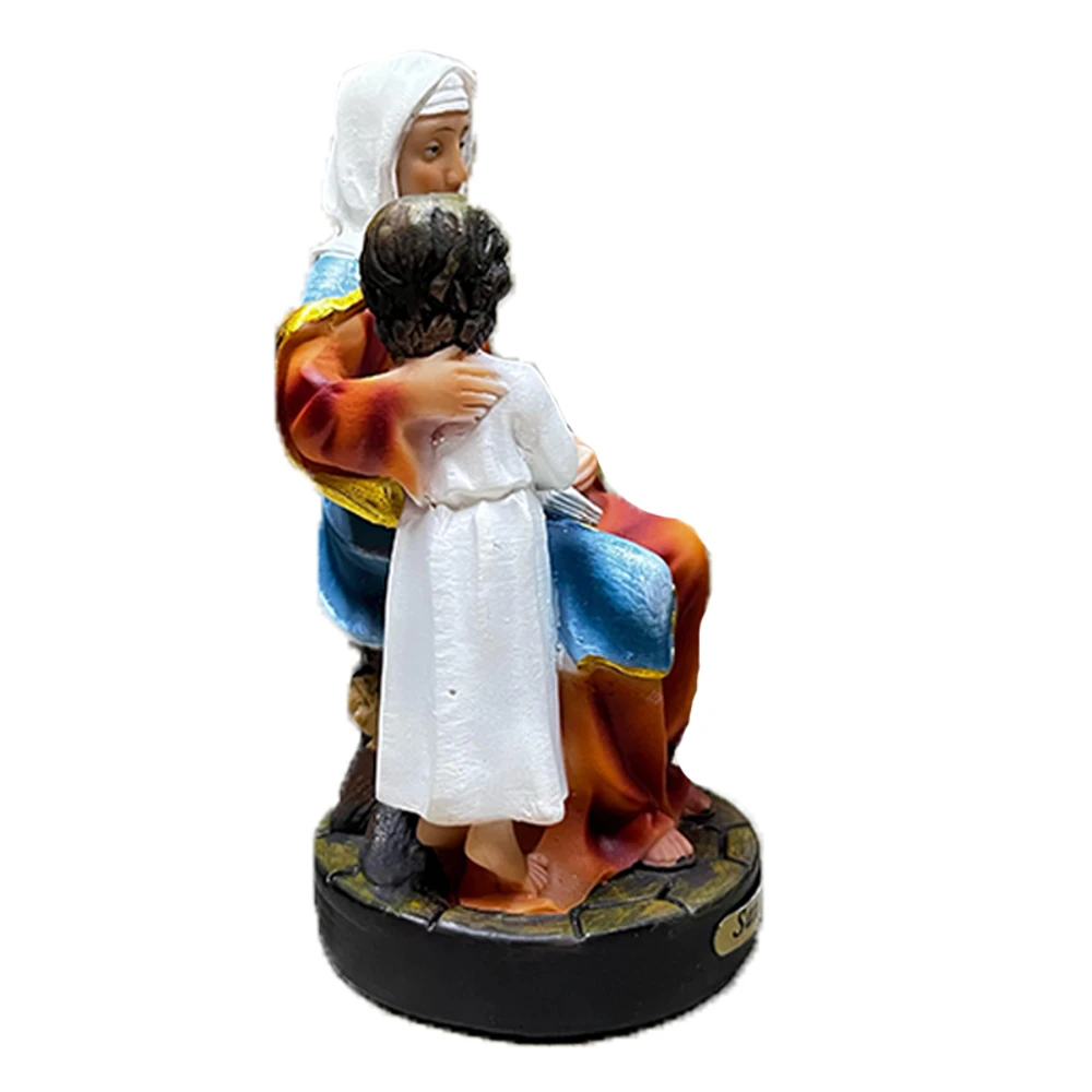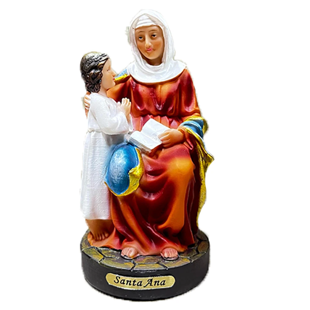 feita em resina de alta qualidade. A peça apresenta Santa Ana sentada, vestida com túnica vermelha e manto azul, segurando um livro aberto e acompanhada de uma criança em oração, simbolizando ensinamento e proteção. Ideal para devotos que buscam fortalecer a fé, decorar ambientes religiosos ou criar um altar pessoal. A resina oferece durabilidade e acabamento vibrante, preservando cores e detalhes por muito tempo. Este artigo religioso une tradição e espiritualidade, tornando-se um símbolo de sabedoria e amor familiar. A estatueta Santa Ana resina 20cm é perfeita para quem valoriza fé e história em sua casa.