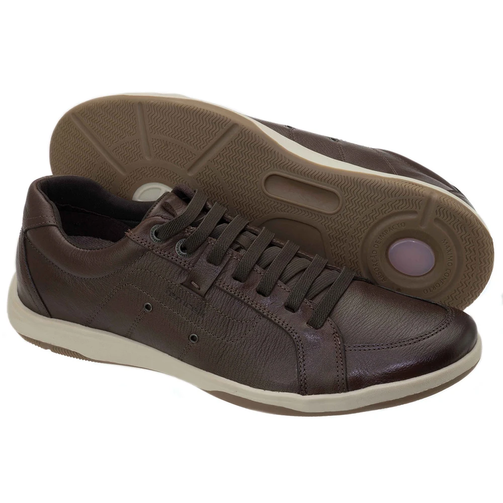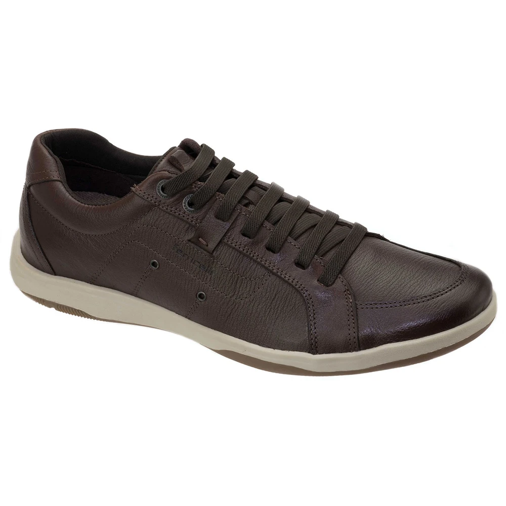 Calçado em couro natural com solado em borracha antiderrapante. Todo costurado e forrado. Moderno e confortável.