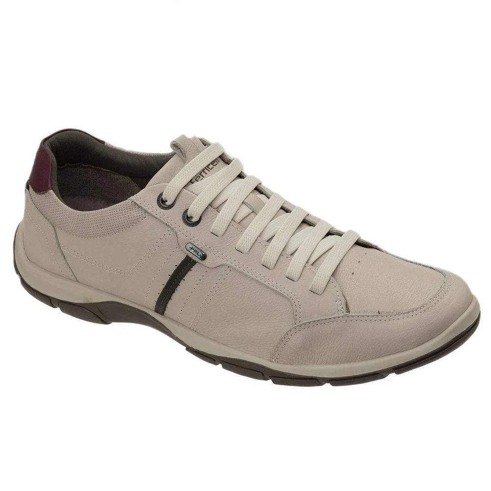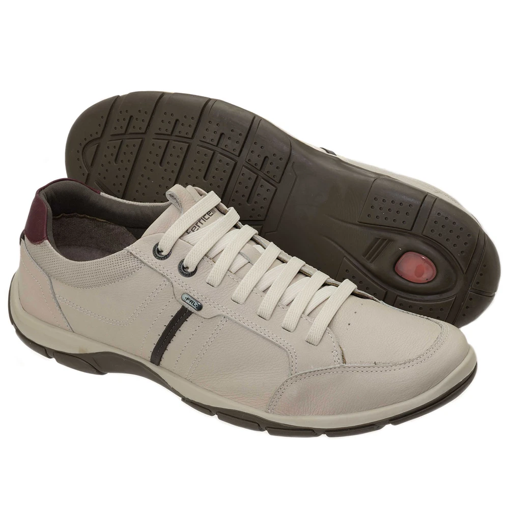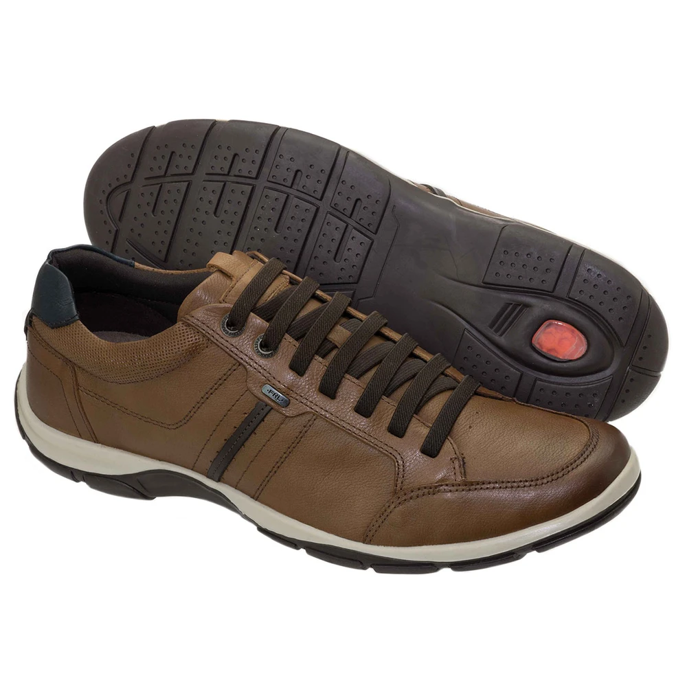Calçado em couro natural com solado em borracha antiderrapante. Todo costurado e forrado. Moderno e confortável.