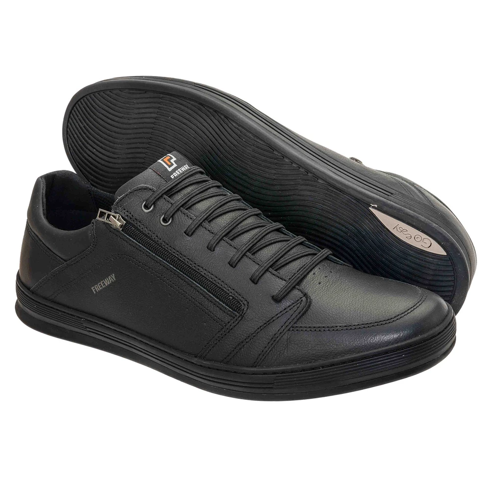 Tênis Masculino Freeway Odin . Confeccionado em couro natural e forro em material textil. Amarração através de atacadores elásticos. Solado em borracha atiderrapante e palmilha em PU.