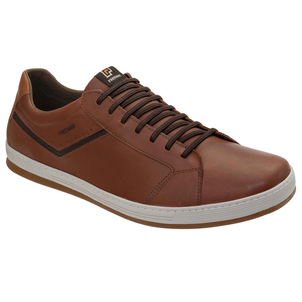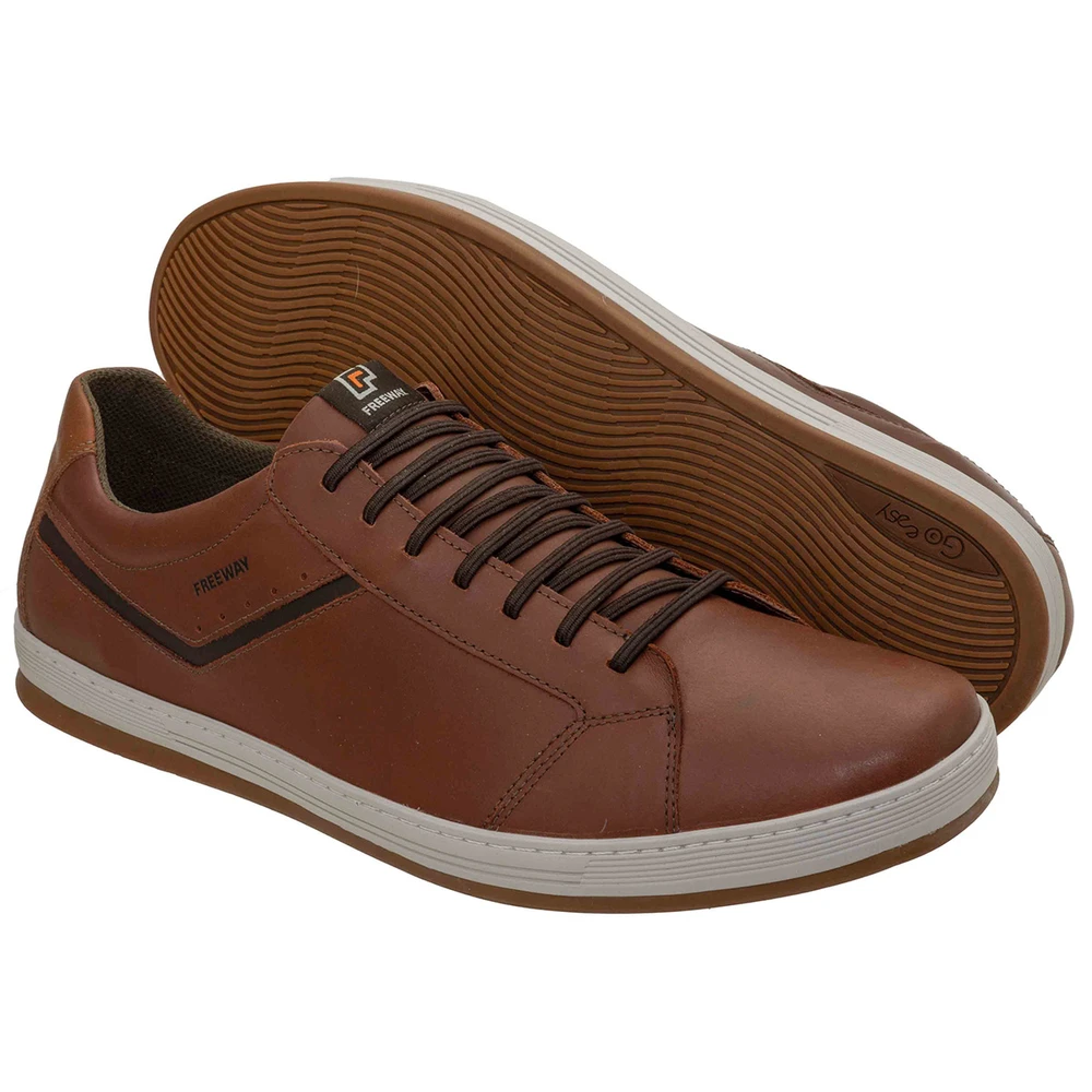 Tênis Masculino Freeway Odin . Confeccionado em couro natural e forro em material textil. Amarração através de atacadores elásticos. Solado em borracha atiderrapante e palmilha em PU.