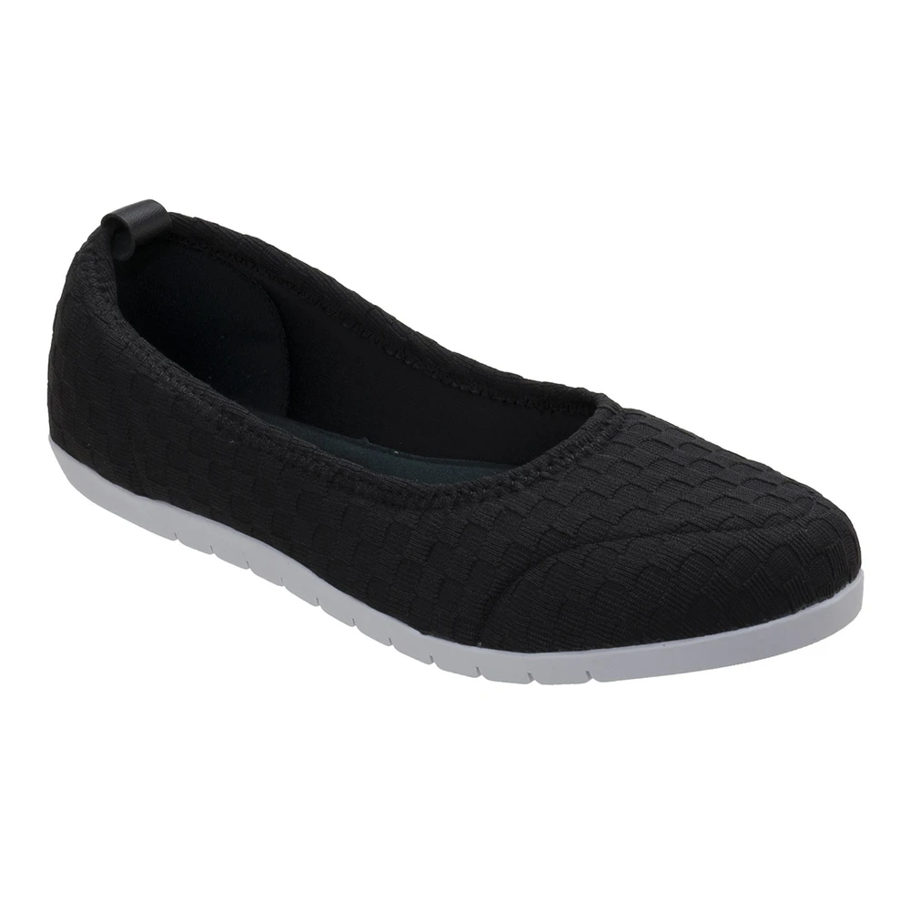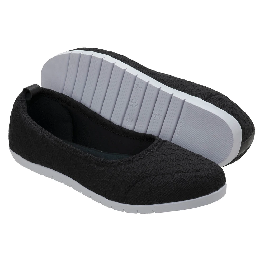 Sapatilha em tecido com solado em borracha antiderrapante.