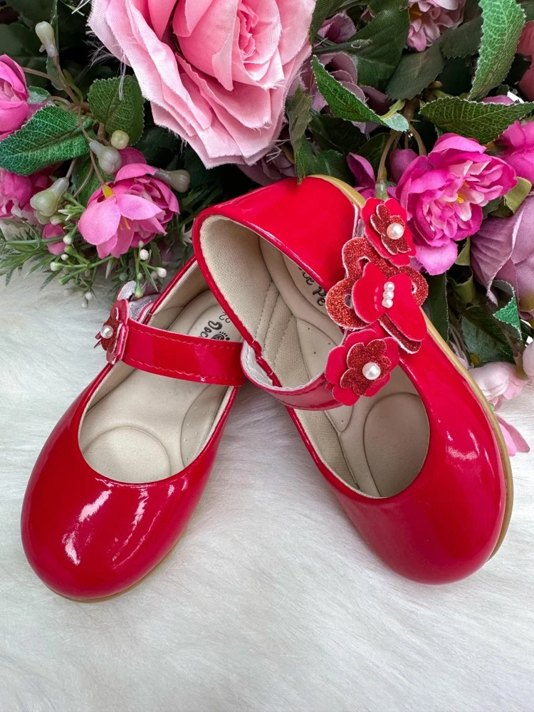Conta ainda com o estilo clássico que amamos. Linha no solado confeccionado em material macio e leve,possui apliques de flores, com pérolas e pedras strass no miolo.