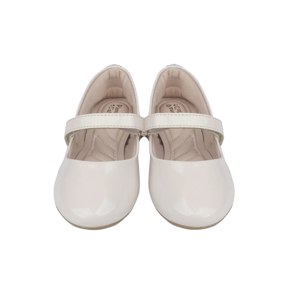 Sapatilha infantil feminina em sintético envernizado nude, com tira superior em velcro que permite regulagem, moderna para todos os momentos! Sapatilha com forro que auxilia na absorção do suor e espuma no calcanhar. A sapatilha feminina Pampili possui palmilha anatômica, confortável e flexível para cuidar do bem estar dos pezinhos. Solado emborrachado, que possui aderência com o chão, proporcionando flexibilidade, menor desgaste e maior resistência térmica. Detalhe de aplique em metal Pampili na lateral.