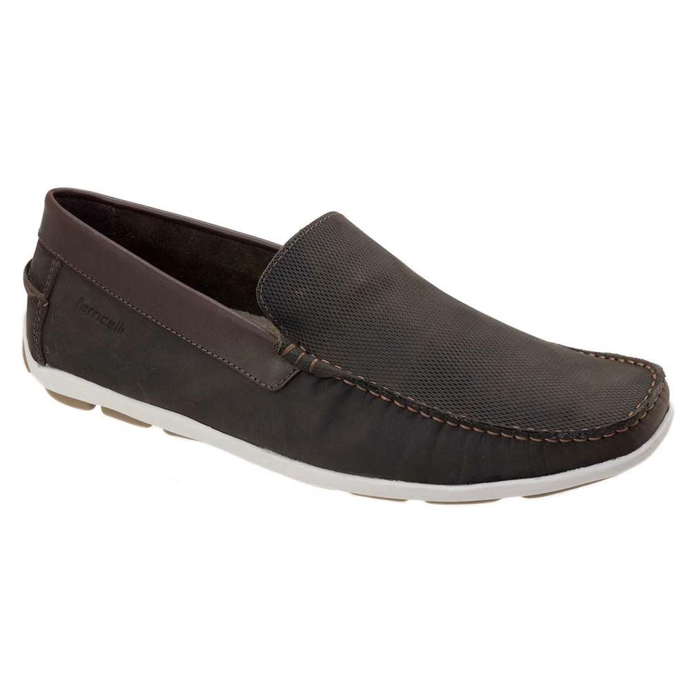 Calçado em couro natural com solado em borracha antiderrapante. Todo costurado e forrado. Moderno e confortável.