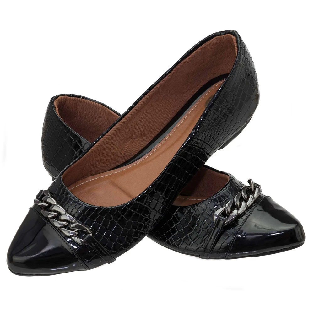Sapatilha em laminado sintético com solado em borracha antiderrapante.