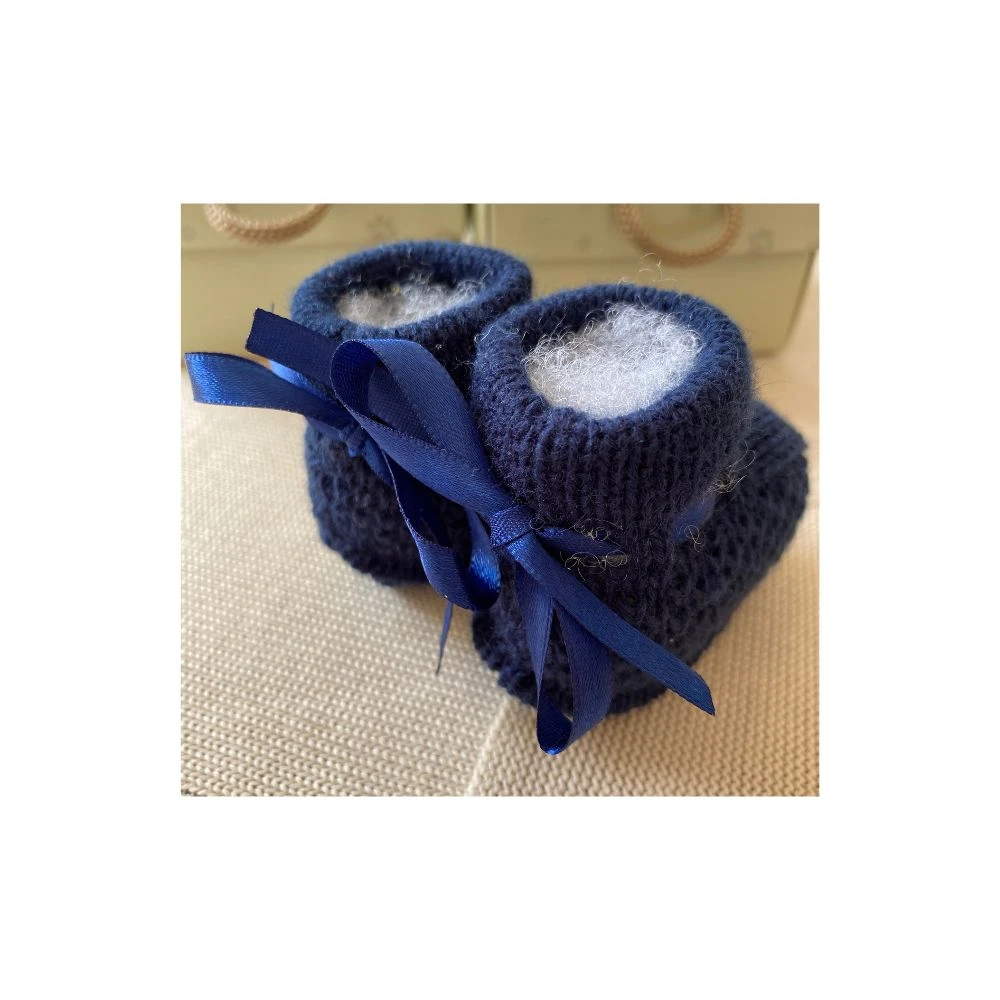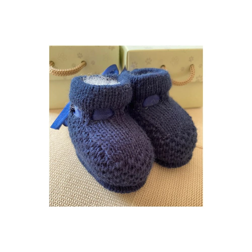 Sapatinho de tricô para bebê prematuro Azul Marinho