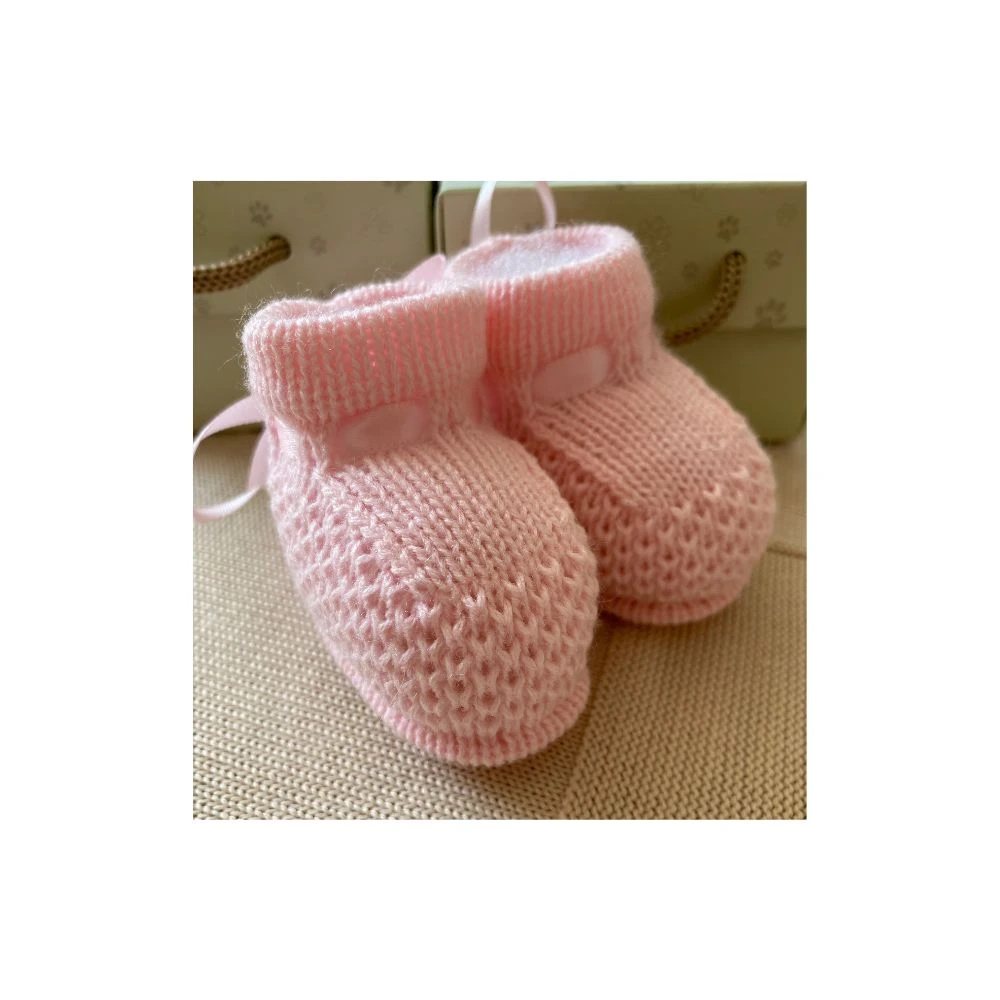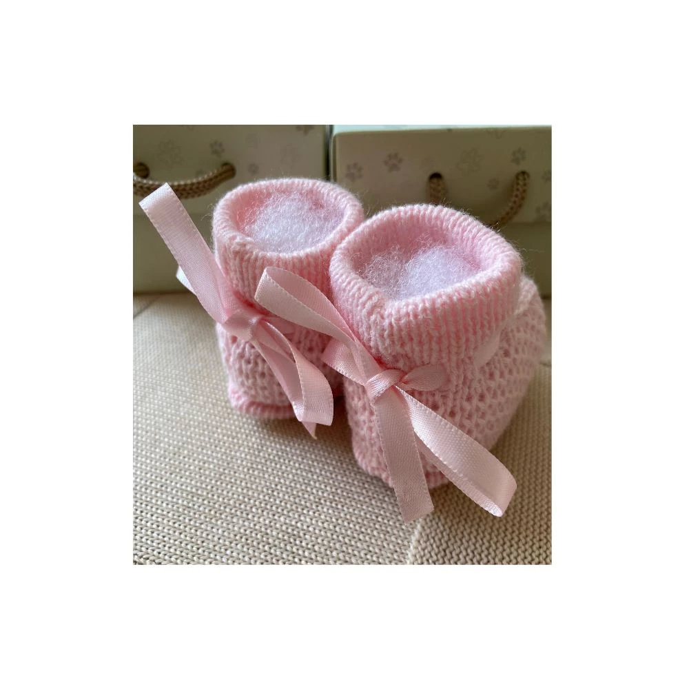 Sapatinho de tricô para bebê prematuro Rosa