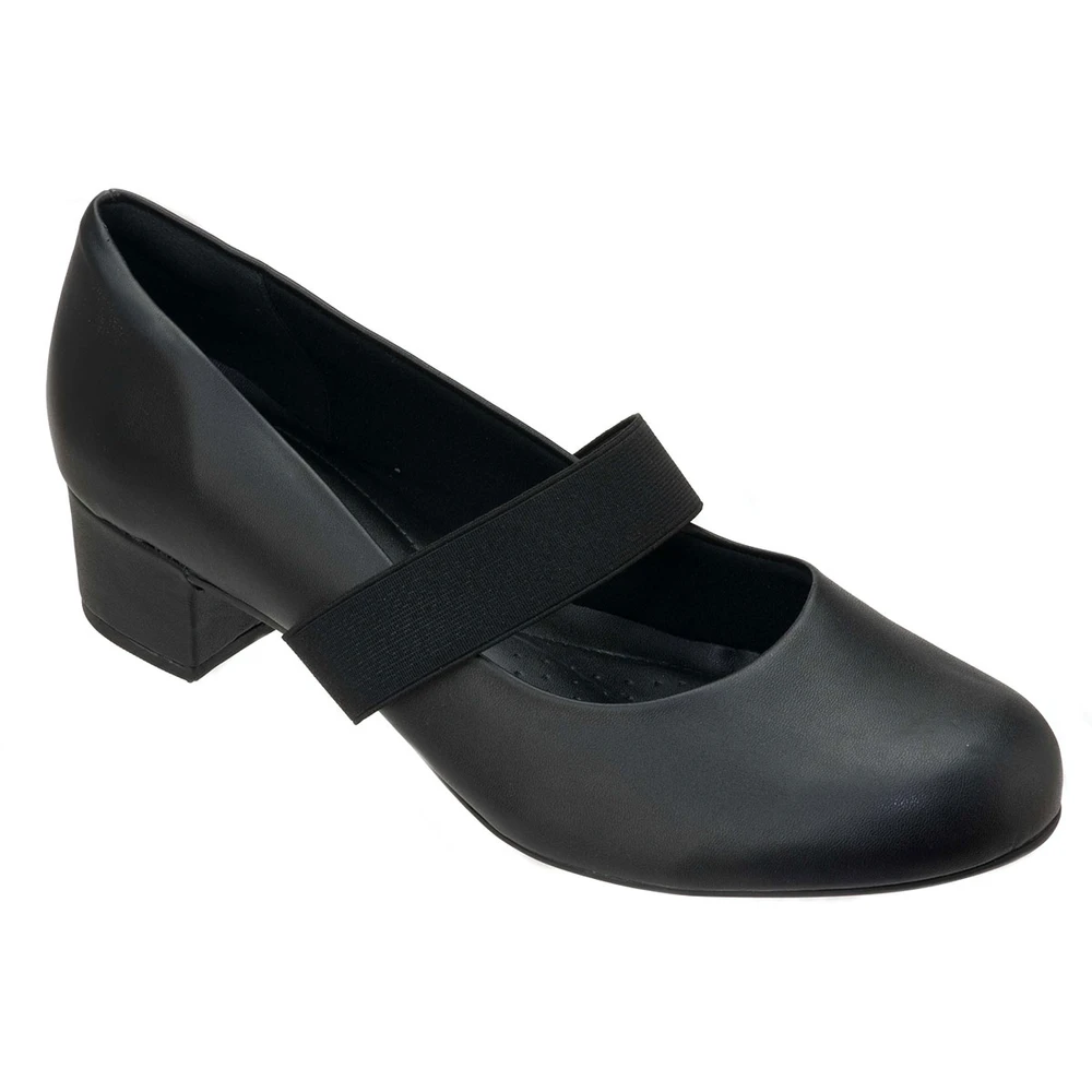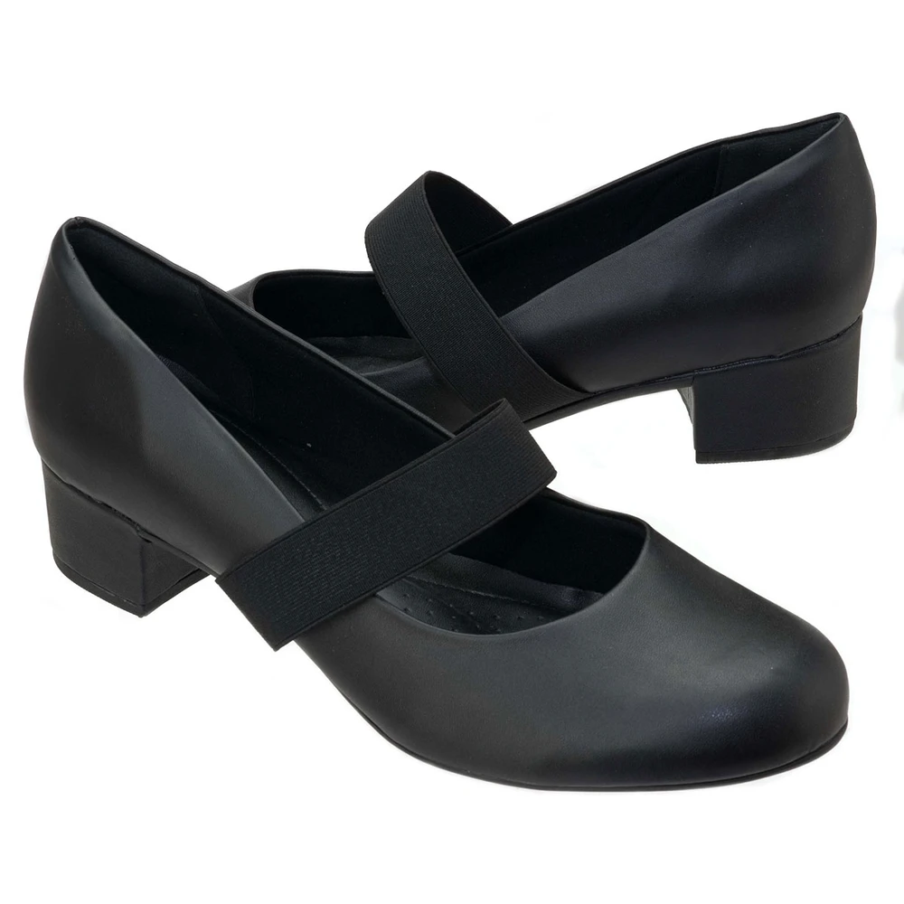 Sapato em couro ecológico e solado em borracha antiderrapante, com saltinho de 4,5 cm de altura.