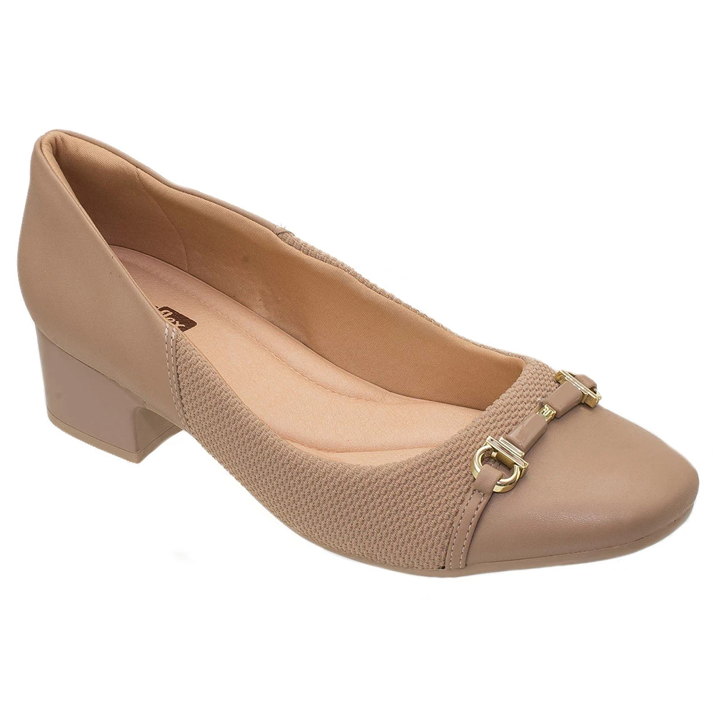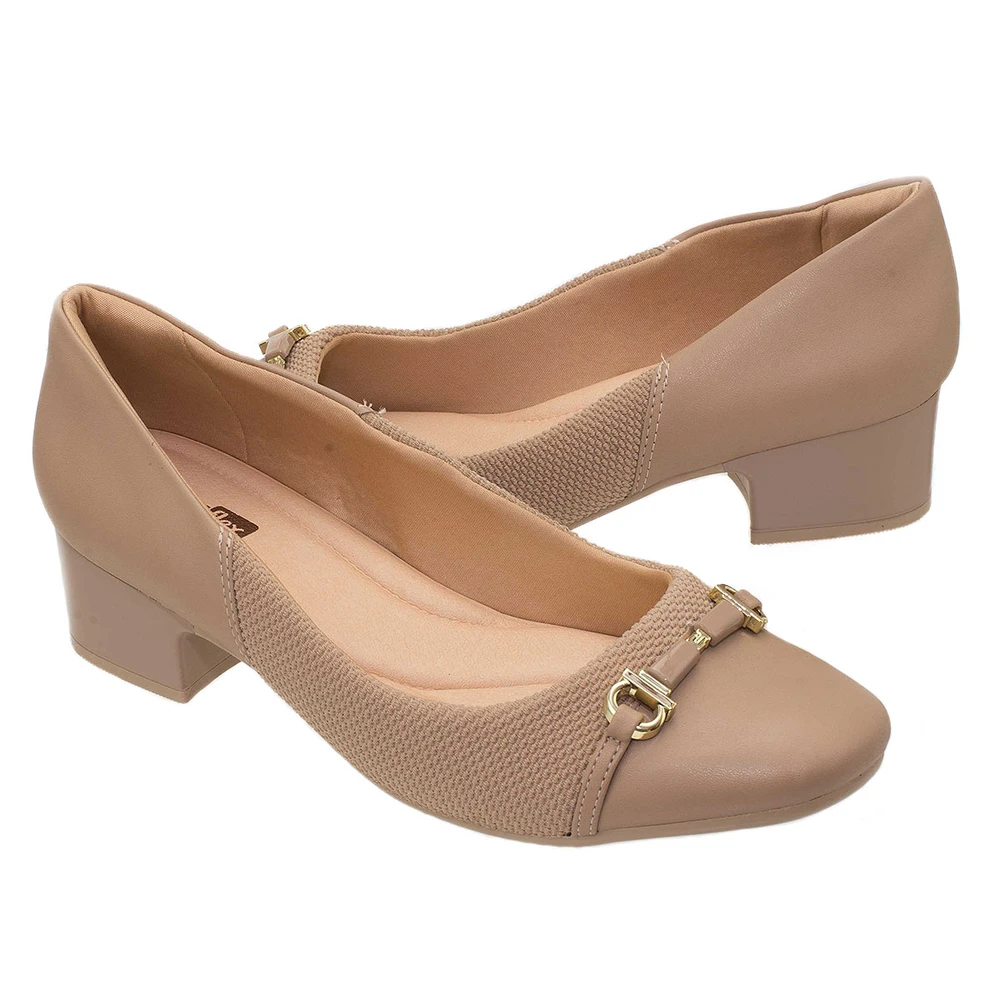 Sapato em laminado sintético, com solado em borracha e saltinho de 4,5 cm de altura.