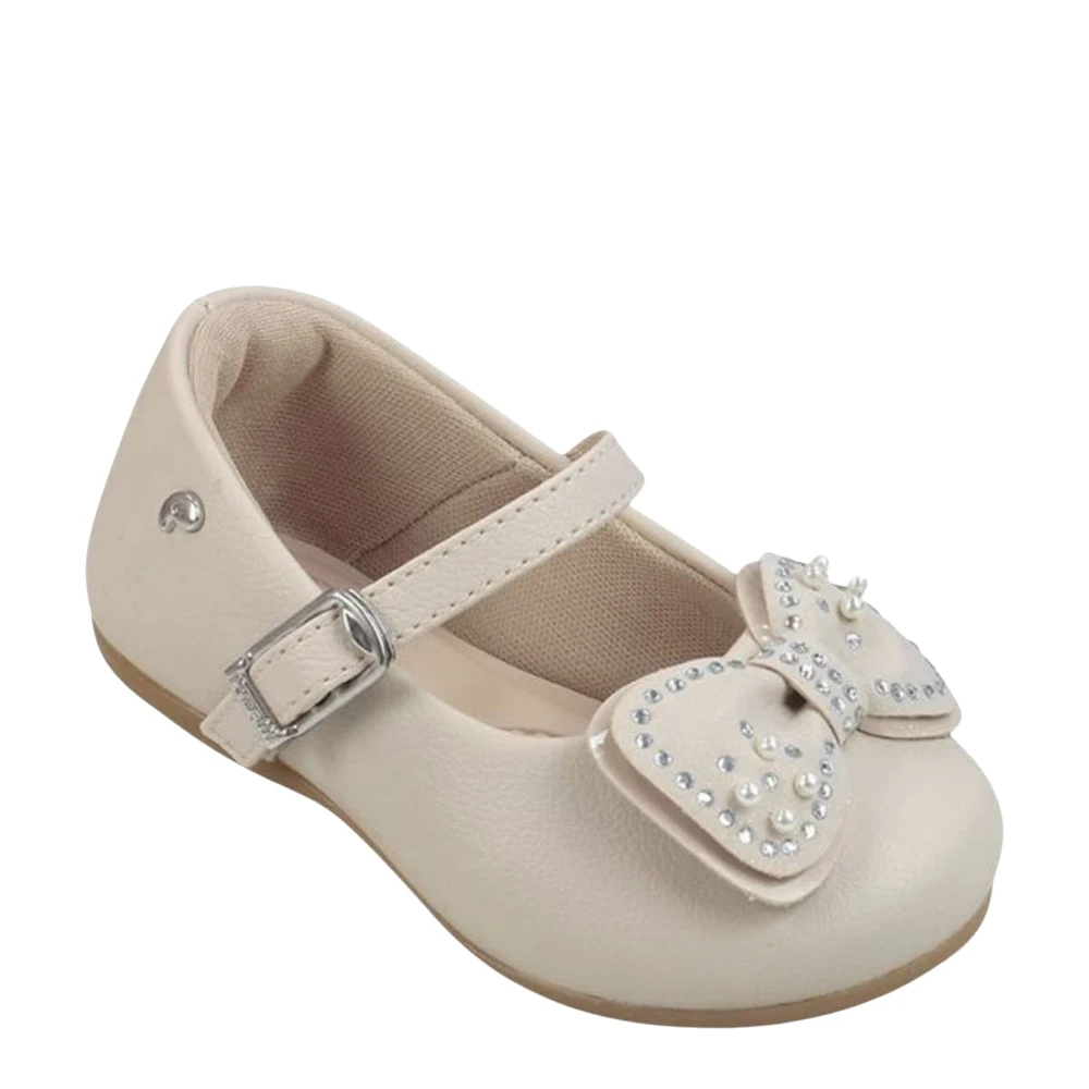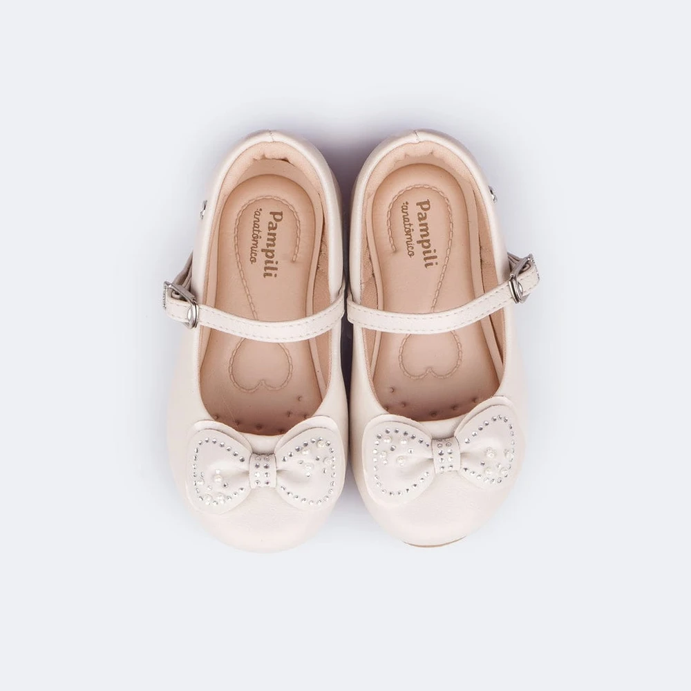 Delicado e cheio de brilho, o sapato Angel nude é perfeito para compor looks clássicos e encantadores. Com bico arredondado, o modelo ganha um charme especial com os duplos laços frontais decorados com strass em hotfix, que iluminam o visual com suavidade.