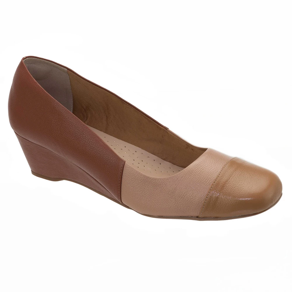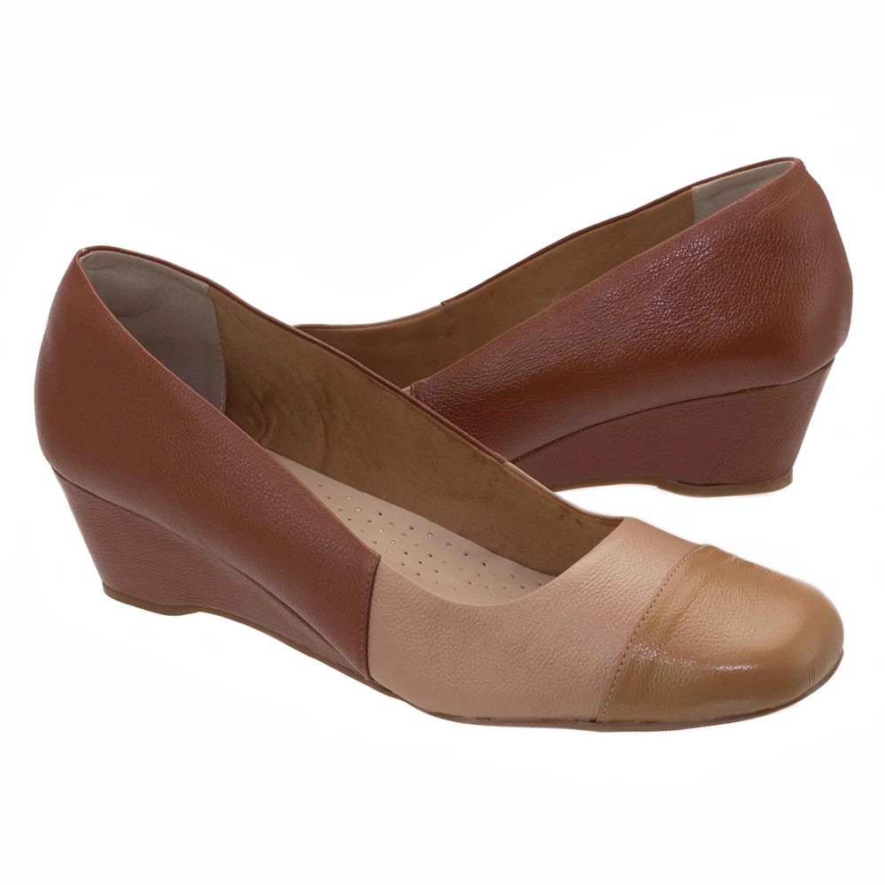 Sapato em couro com saltinho de 6,5 cm de altura e solado em borracha antiderrapante.