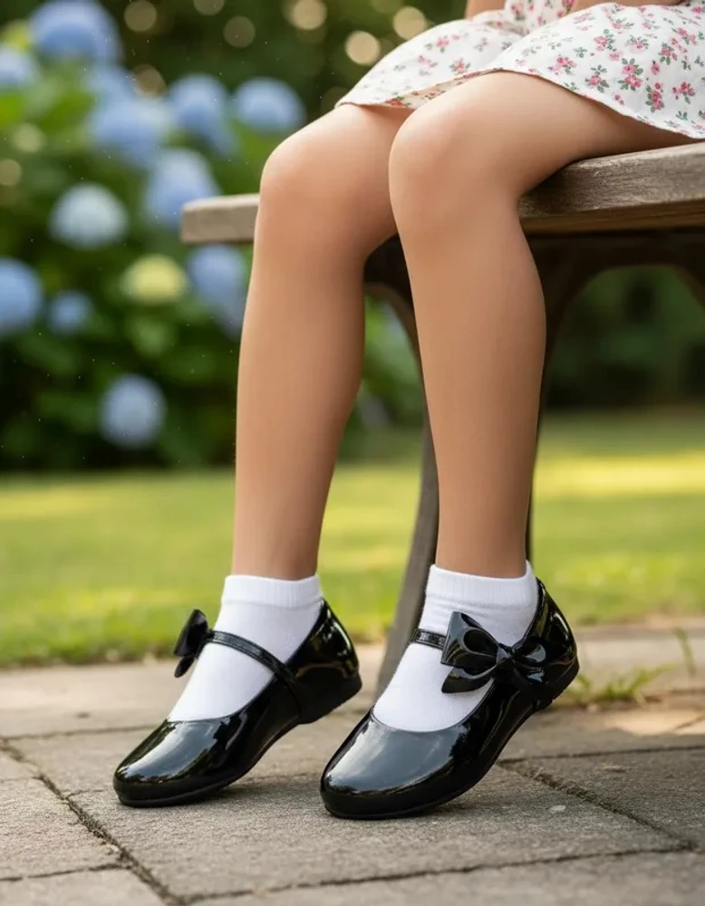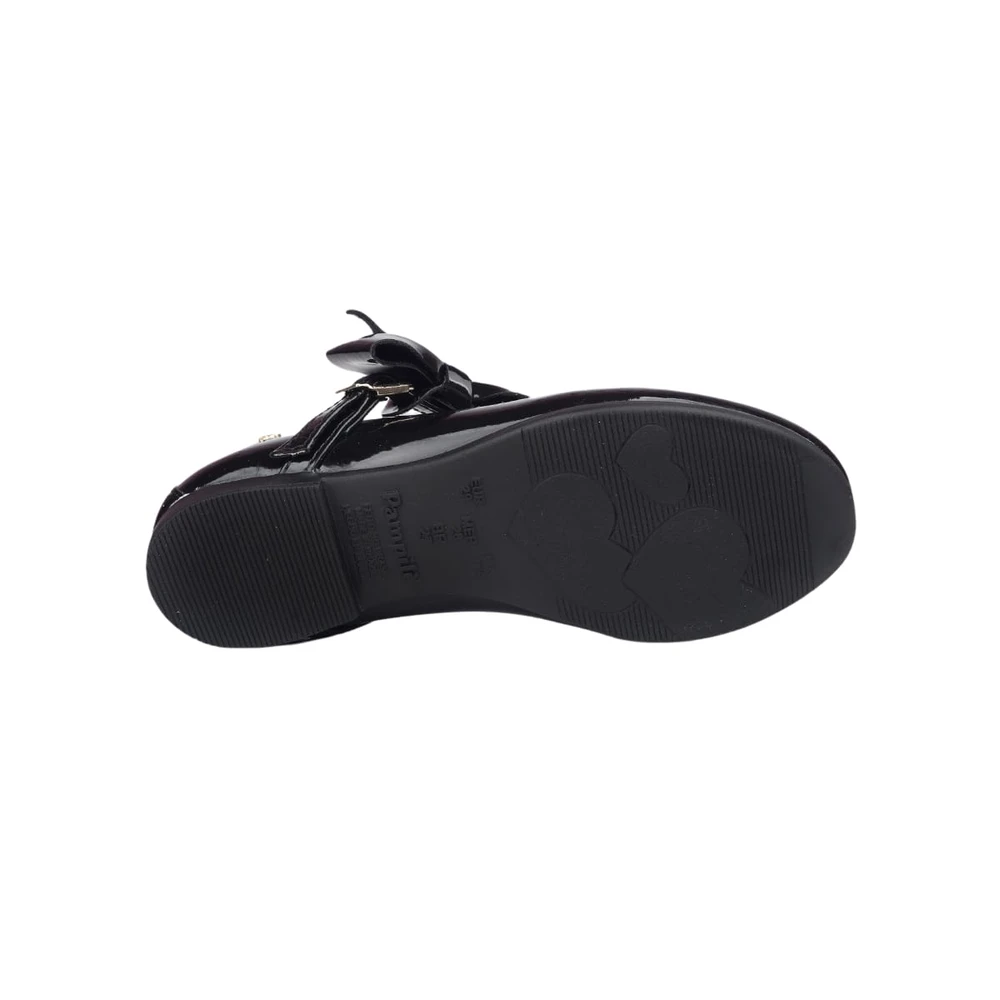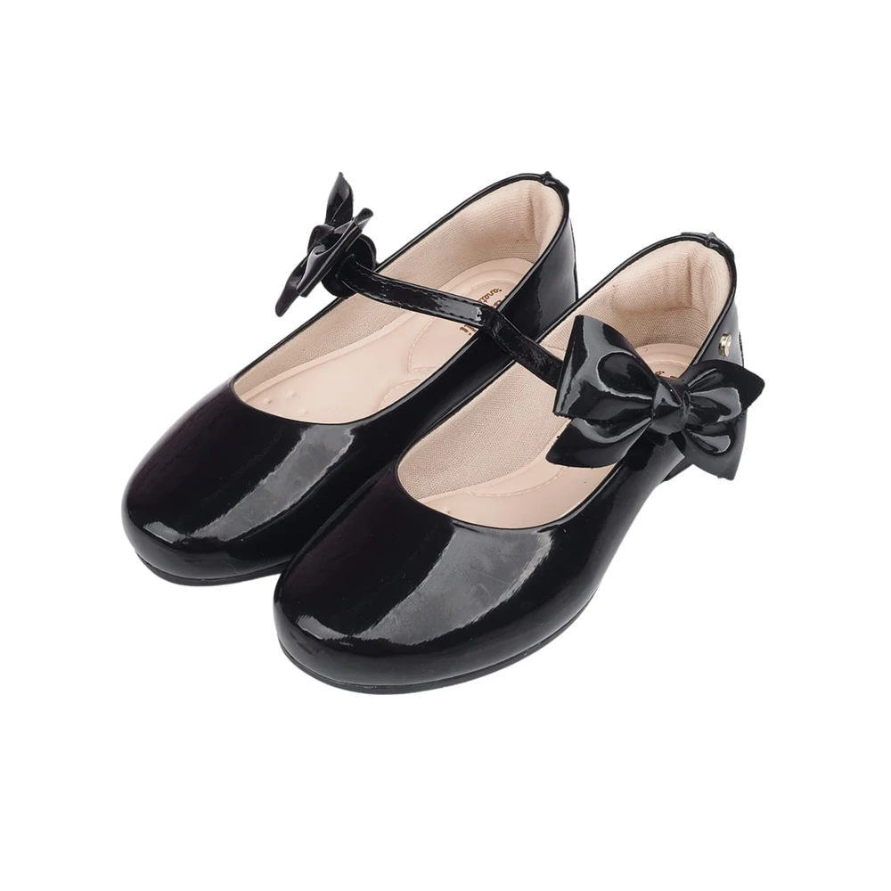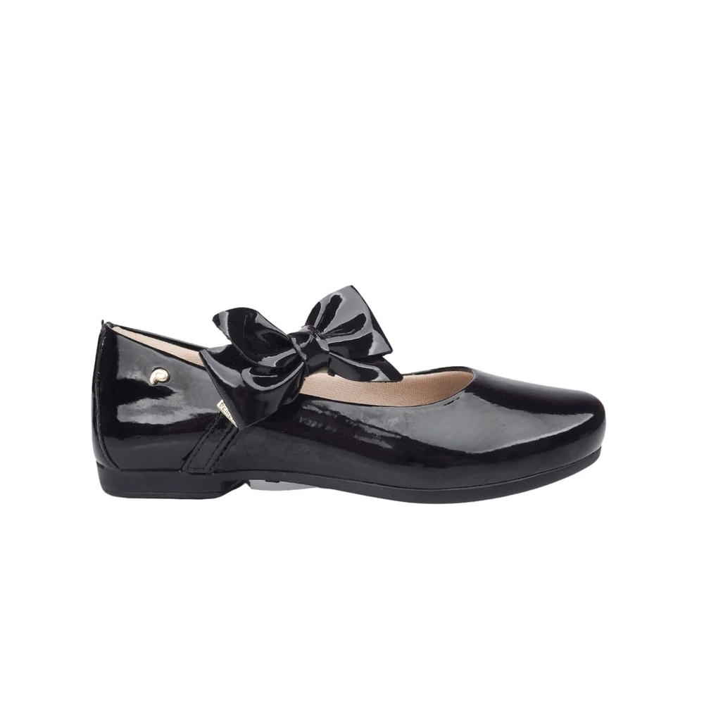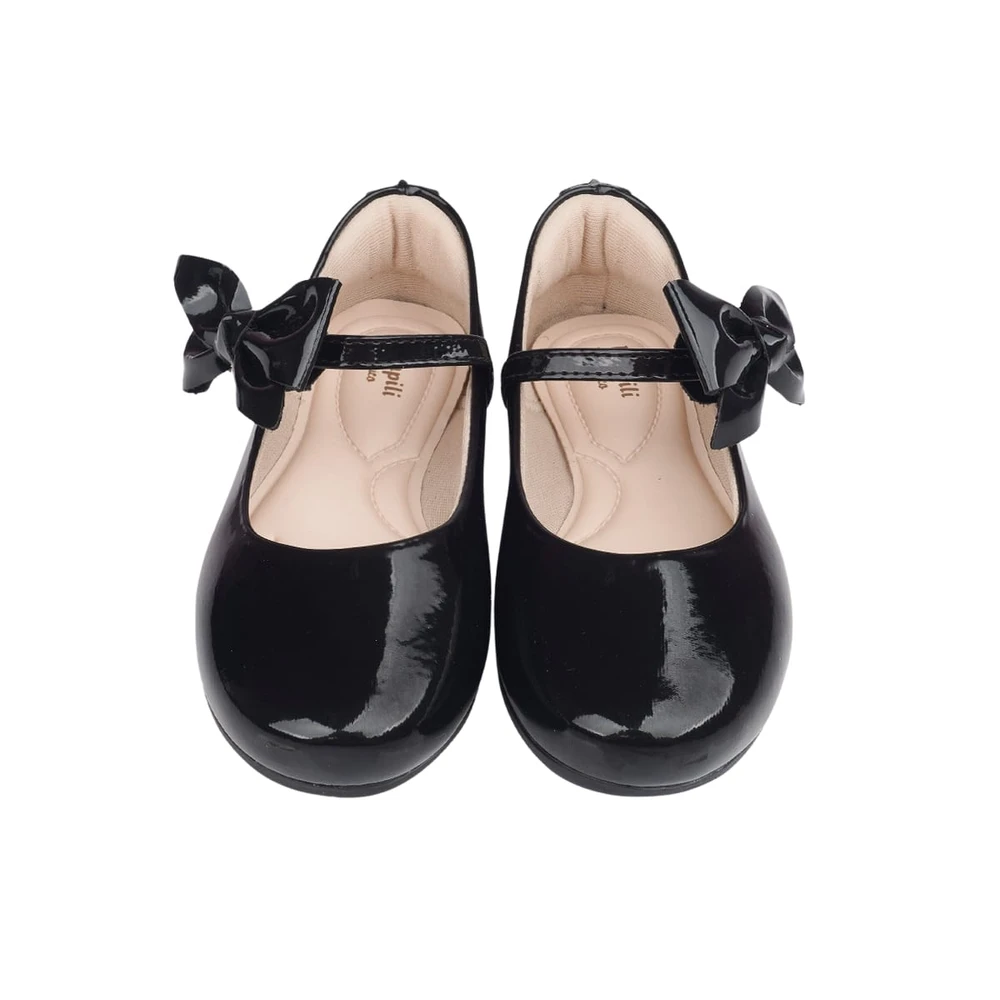Sapato verniz em sintético preto com laço na tira de fechamento, podendo ser usado de duas formas, com ou sem o laço! Sapato infantil forrado com tecido que absorve o suor e com forro no calcanhar. Sapato feminino com palmilha anatômica, confortável e flexível para cuidar do bem estar aos pezinhos. Sapatilha feminina com solado emborrachado antiderrapante, leve e flexível. Sapatilha infantil com fechamento em fivela sem pino, que facilita o calce, dando autonomia para as meninas.