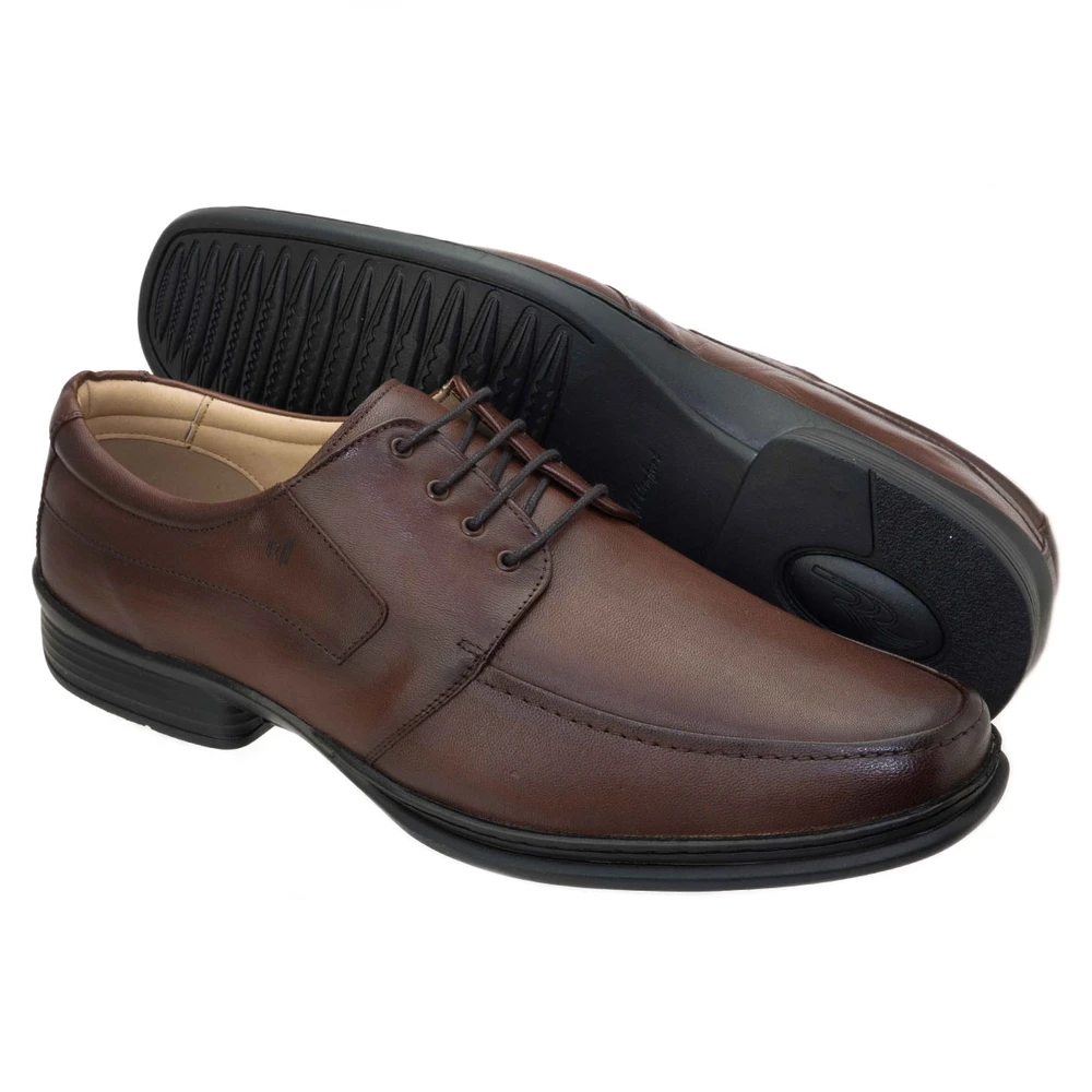 O sapato social masculino da linha Soft Confort, é feito com muita qualidade. A palmilha interna de PU é de material leve e confortável, e seu solado em poliester PU, não hidrolisa e possui leveza e maciez de alta abrasão. É um calçado de muito conforto, capaz de absorver todo impacto ao caminhar, e continua sempre na sua forma original. Os modelos destes calçados usam os melhores couros em sua construção, garantindo conforto, beleza e durabilidade sem similar. As cores são mais tradicionais e variam dos terrosos ao preto. Feito de couro ou de tecido espumado, seu forro é extremamente absorvente e arejado. Por ser costurado à mão no solado, o sapato de couro Soft Confort, como o próprio nome diz, proporciona muito conforto aos pés.
