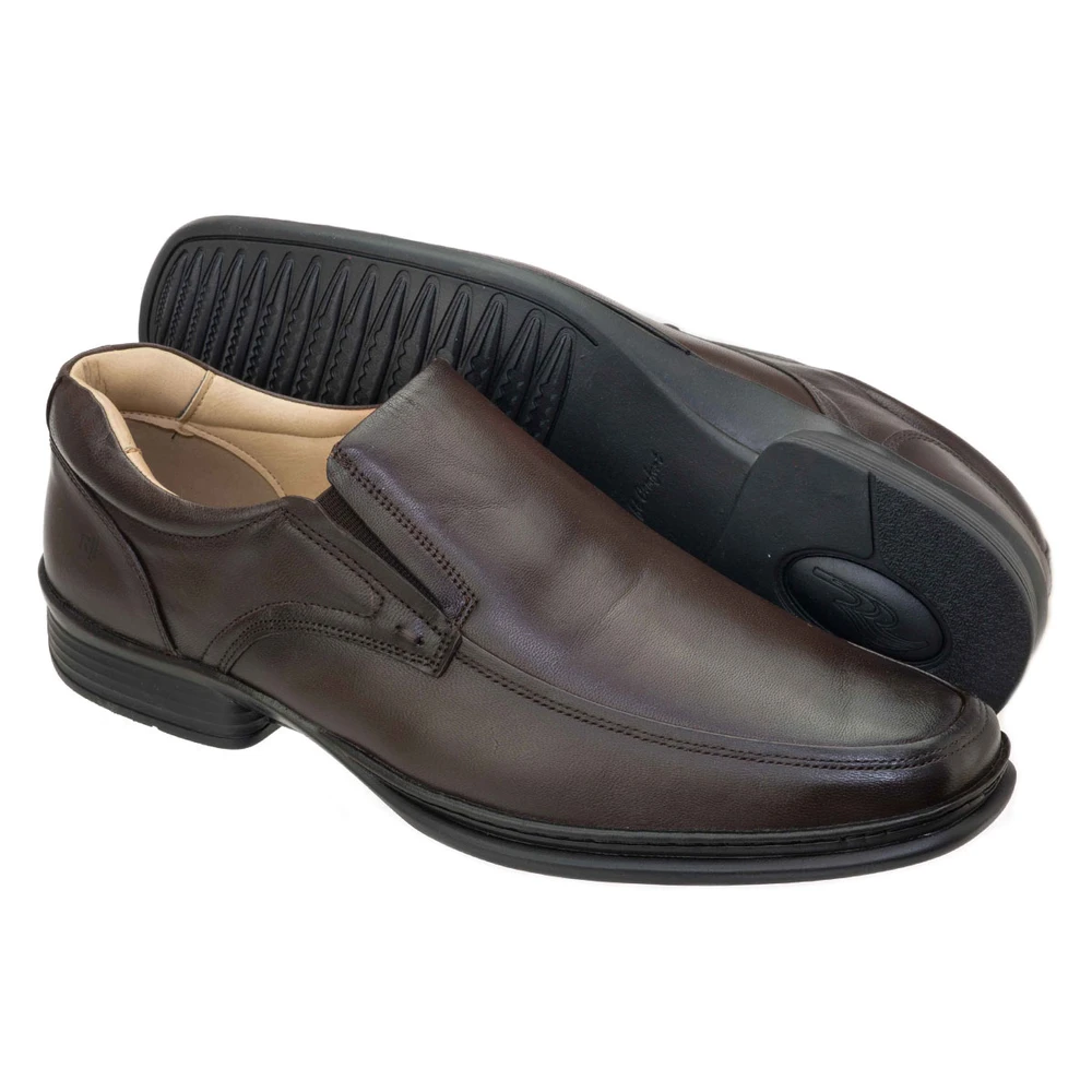 O sapato social masculino da linha Soft Confort, é feito com muita qualidade. A palmilha interna de PU é de material leve e confortável, e seu solado em poliester PU, não hidrolisa e possui leveza e maciez de alta abrasão. É um calçado de muito conforto, capaz de absorver todo impacto ao caminhar, e continua sempre na sua forma original. Os modelos destes calçados usam os melhores couros em sua construção, garantindo conforto, beleza e durabilidade sem similar. As cores são mais tradicionais e variam dos terrosos ao preto. Feito de couro ou de tecido espumado, seu forro é extremamente absorvente e arejado. Por ser costurado à mão no solado, o sapato de couro Soft Confort, como o próprio nome diz, proporciona muito conforto aos pés.
