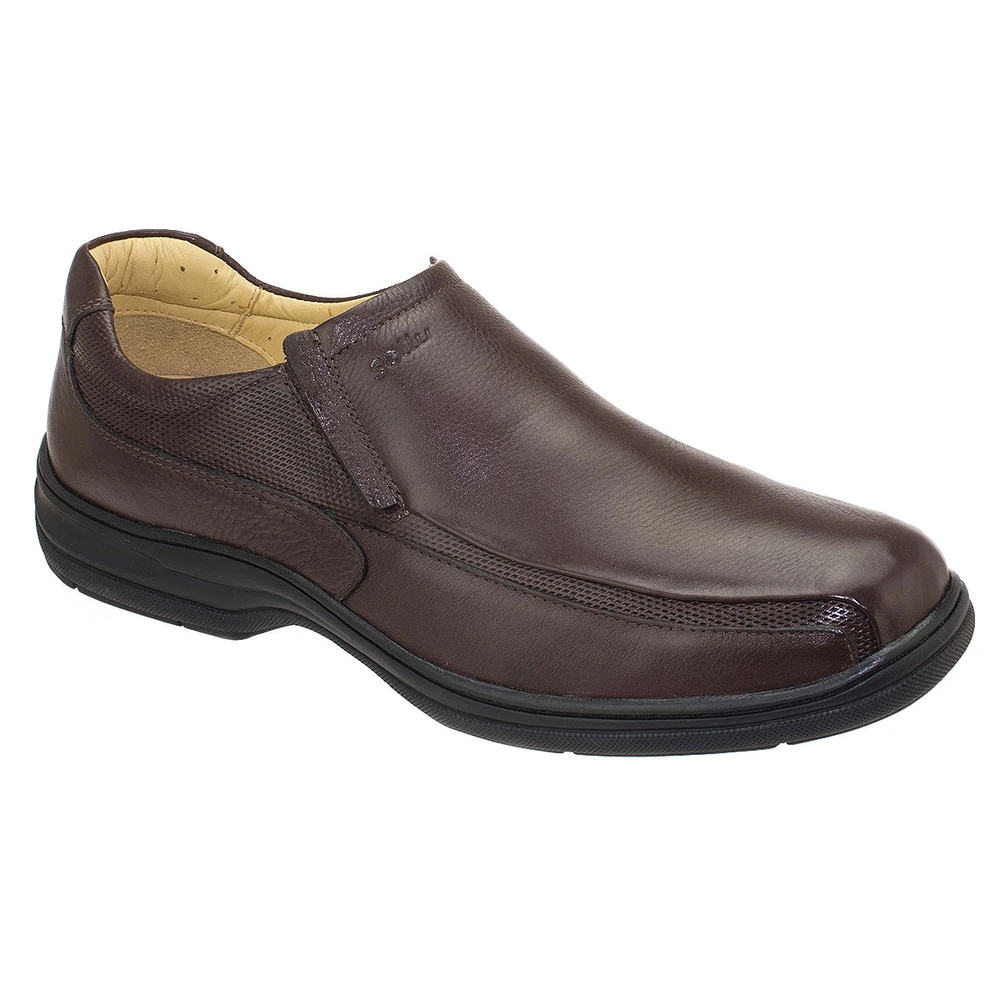 Sapato em couro com super sistema de amortecimento feito pela palmilha com pontos de massagem, formato anatômico e máxima leveza. E solado em borracha antiderrapante.