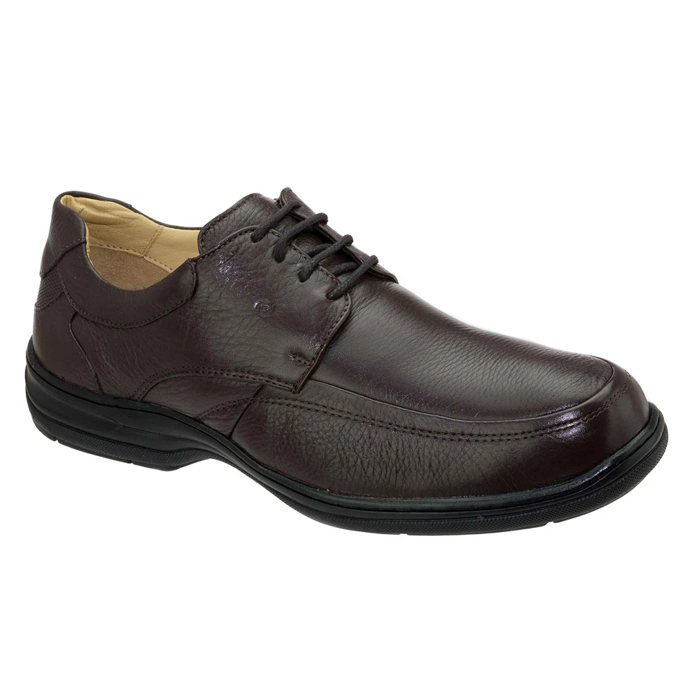 Sapato em couro com super sistema de amortecimento feito pela palmilha com pontos de massagem, formato anatômico e máxima leveza. E solado em borracha antiderrapante.