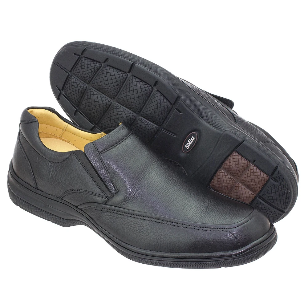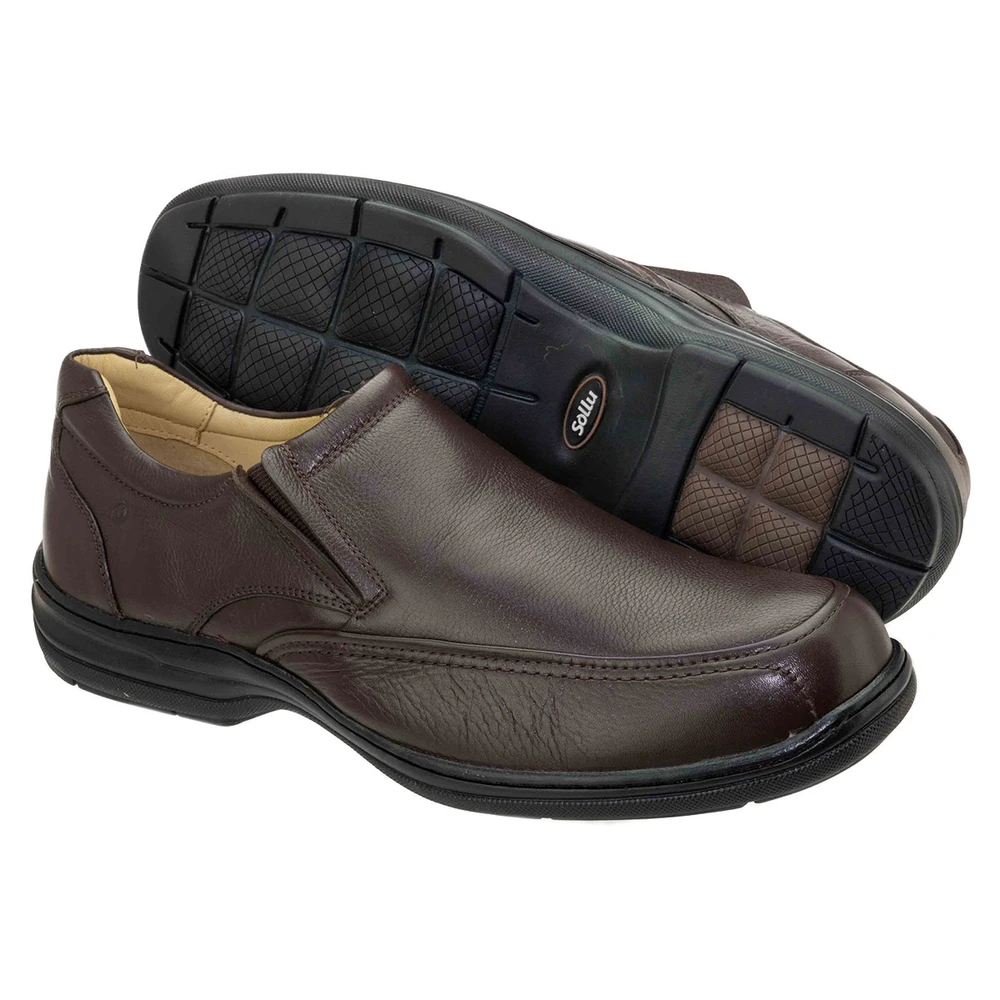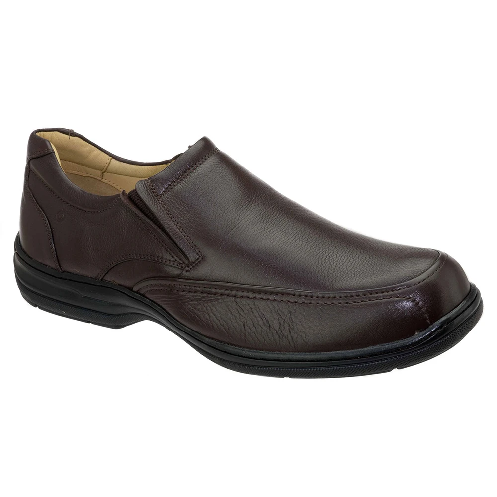 Sapato em couro com super sistema de amortecimento feito pela palmilha com pontos de massagem, formato anatômico e máxima leveza. E solado em borracha antiderrapante.