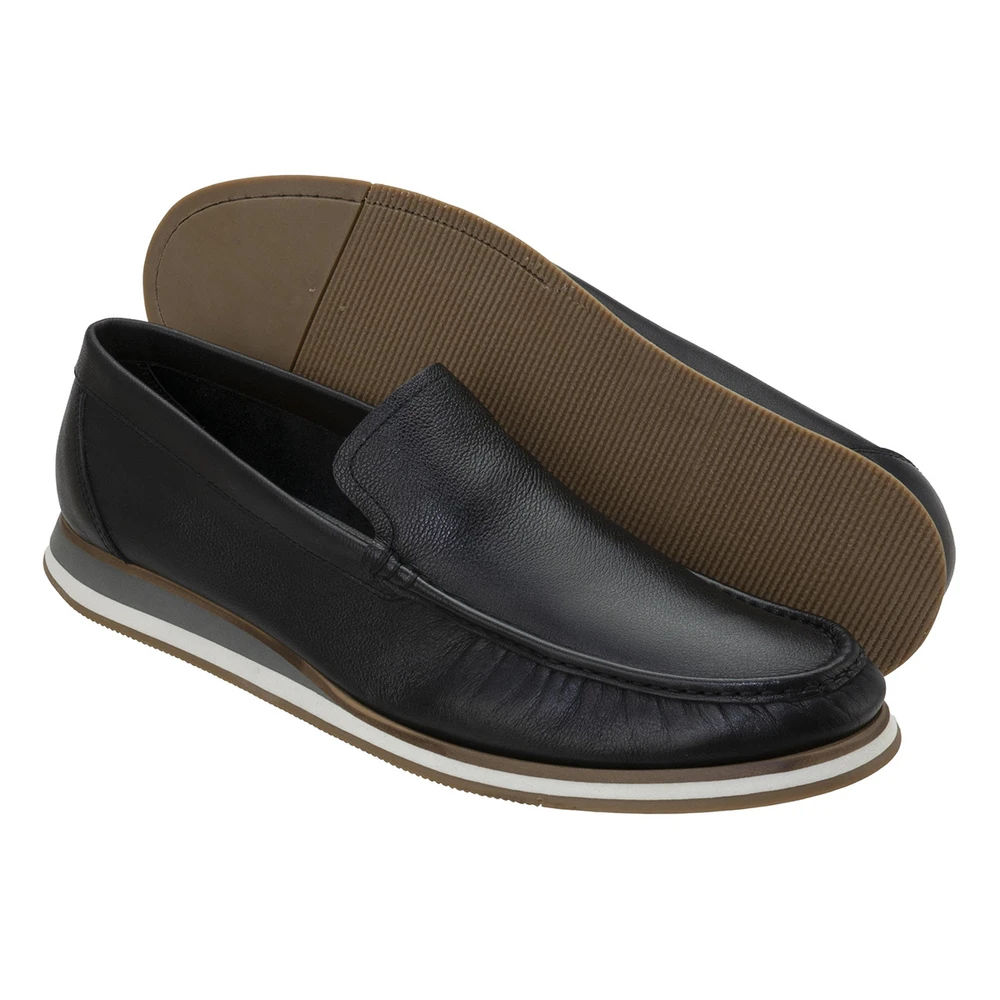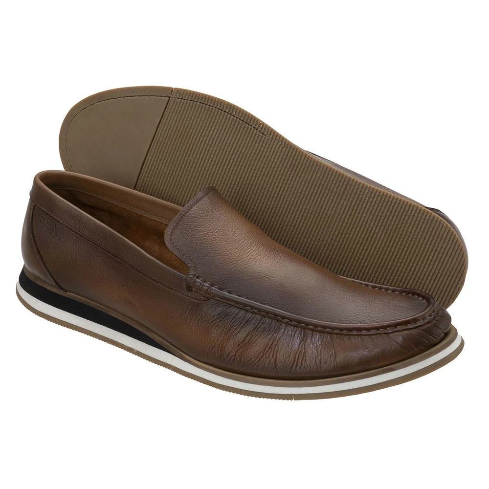 Sapato esportivo em couro com solado em boracha. Muito estiloso e macio. Perfeito para uso com calças, bermudas e shorts.