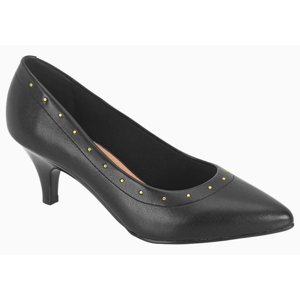 Alie praticidade e originalidade ao design elegante e moderno do Scarpin Salto Baixo que conta com bico diferenciado e detalhe metalizado no cabedal.