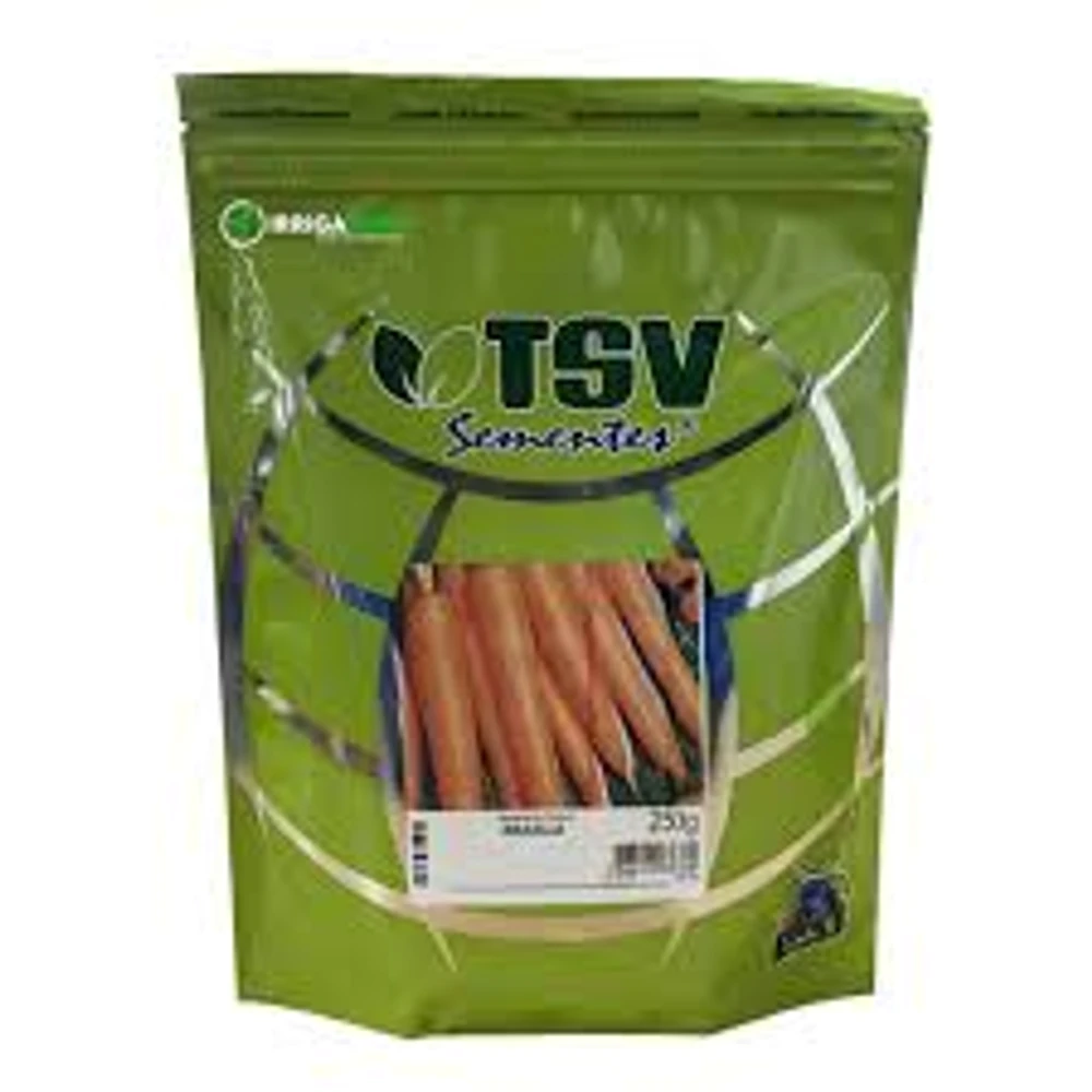 A cenoura Brasília da TSV Sementes é uma variedade de alto rendimento, ideal para o plantio em épocas quentes e chuvosas (verão), com ciclo de 80 a 100 dias. Resistente ao calor e a doenças foliares, produz raízes cilíndricas de cor laranja intenso, sendo cultivada, principalmente, no Centro-Oeste, Norte e Nordeste.