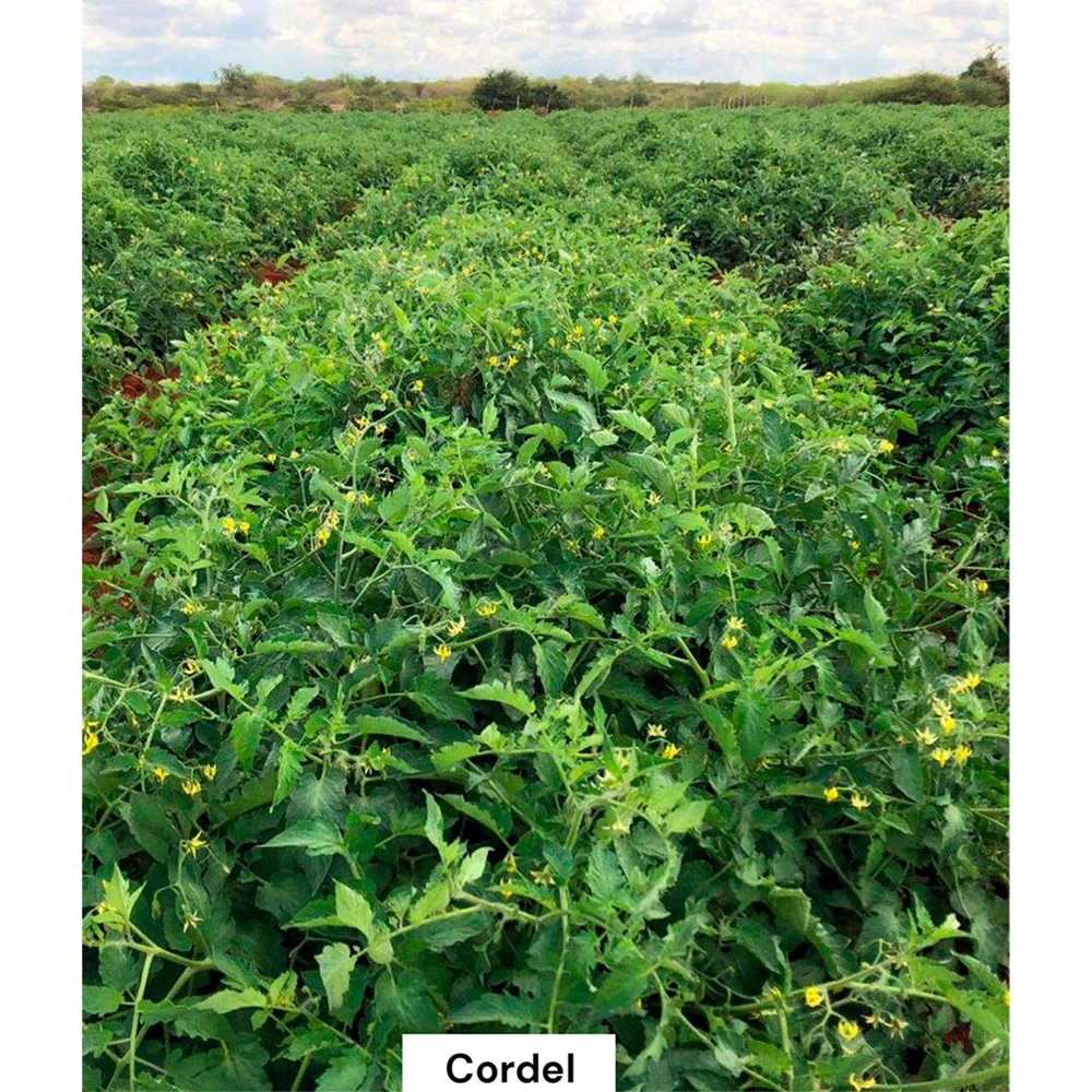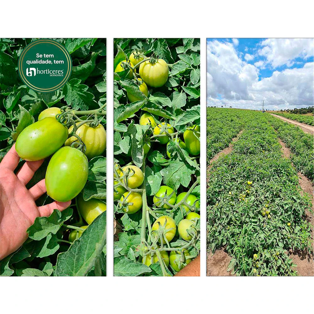 Plantas: vigorosas com boa sanidade, excelente pegamento de frutos, cobertura foliar e hábito de crescimento determinado. Ciclo entre 100 e 110 dias.