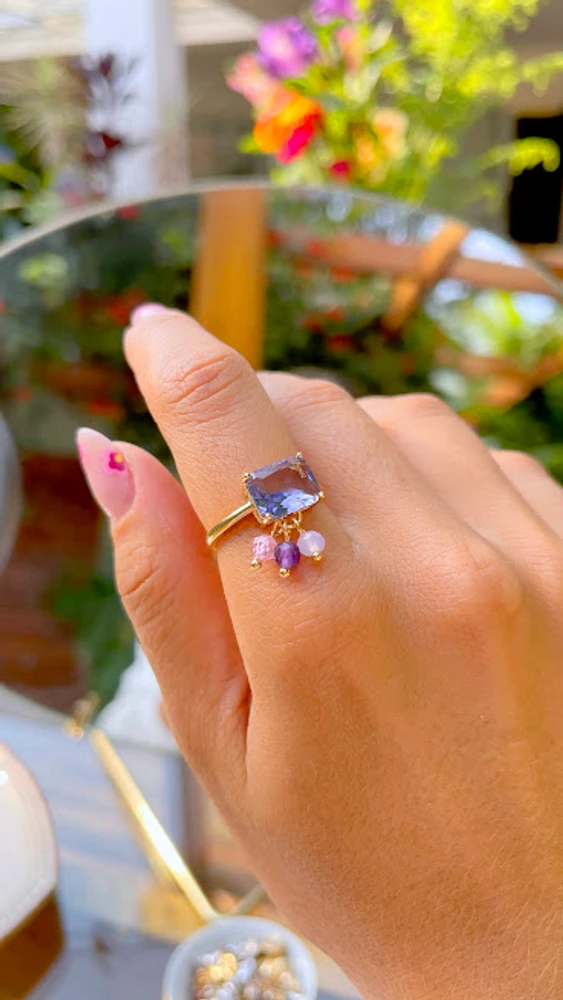 Medidas aproximadas: cristal retangular ametista: 1,5 cm; penduricalhos: 3 mm; espessura do aro:
