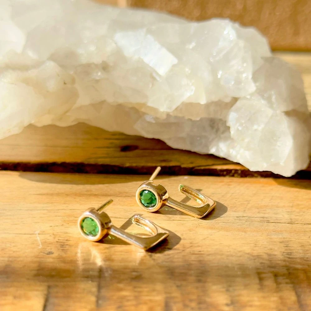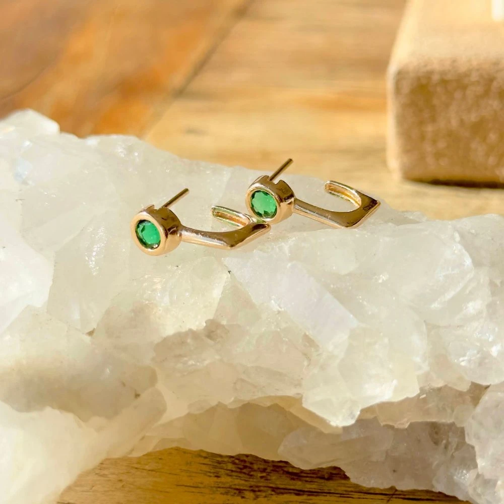 Um brinco com design moderno e elegante com cristal esmeralda na cravação inglesa trazendo presença e imponência para peça. Seus looks com toque de cor e a leveza do design impecável. Sua beleza ainda mais iluminada pelo brilho dessa linda pedra!
