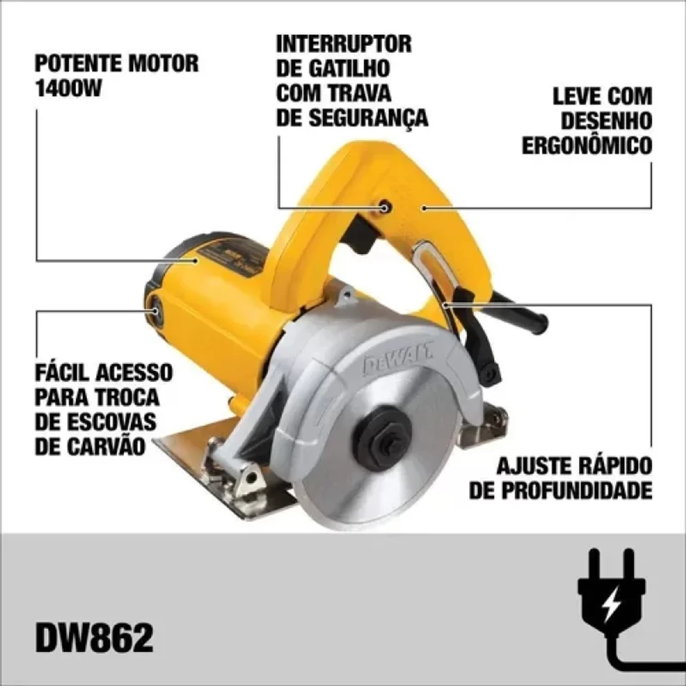 Serra Mármore DeWalt DW862 125 mm 1.400 W Corte Preciso para Cerâmica e Pedra