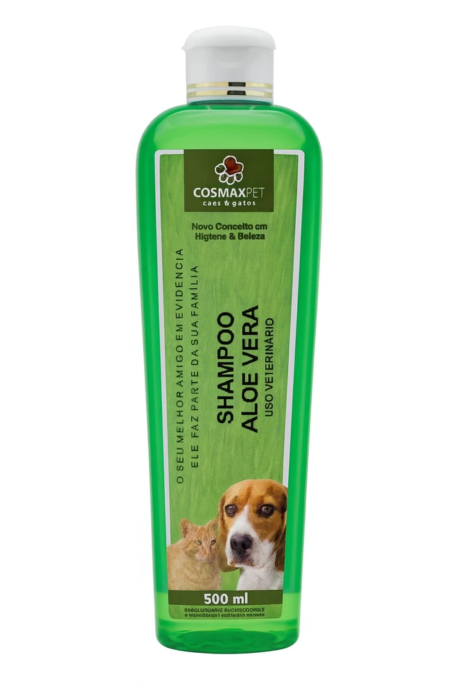 O Shampoo Aloe Vera Cosmax 500ml foi desenvolvido para a higiene de cães e gatos, proporcionando limpeza eficaz com ação hidratante, ideal para peles sensíveis.