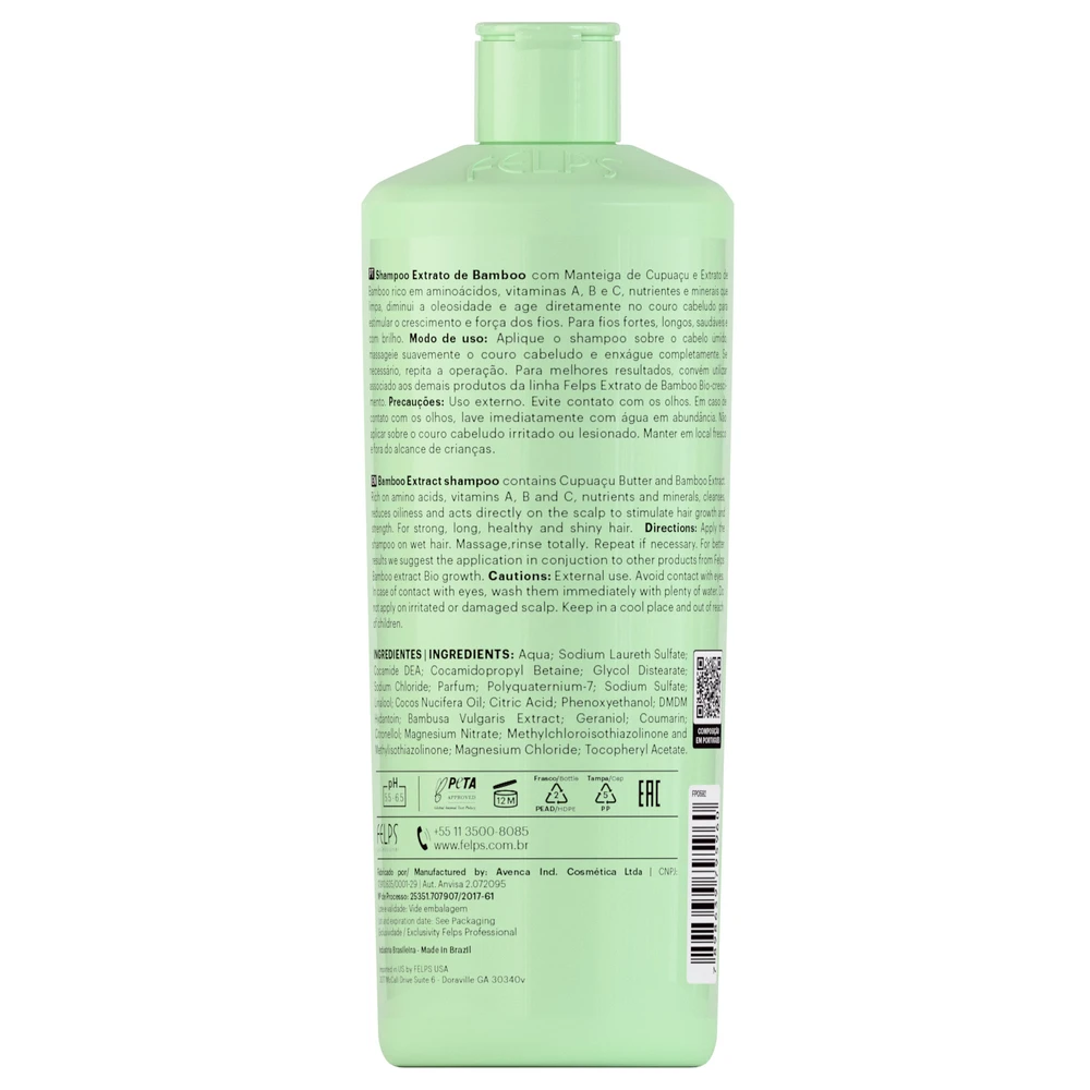 Shampoo Extrato de Bamboo, rico em vitaminas e nutrientes essenciais para o crescimento dos fios. Limpa suavemente e fortalece a fibra capilar, deixando o cabelo macio, saudável, flexível, com brilho e crescimento acelerado.
