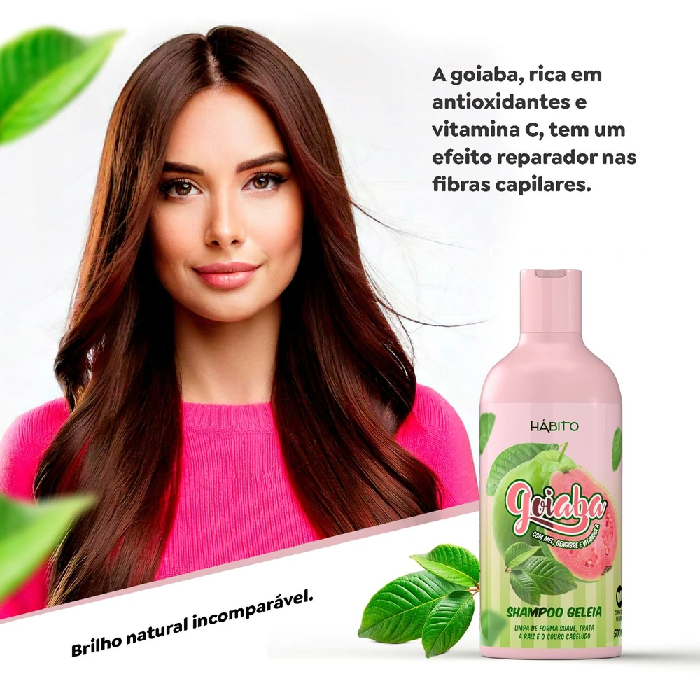 Ideal para todos os tipos de cabelo, oferece resultados visíveis desde o primeiro uso, garantindo saúde e beleza duradoura. Experimente a combinação natural que já conquistou milhares de usuários e transforme sua rotina capilar com o Shampoo de Goiaba Habito Cosméticos.