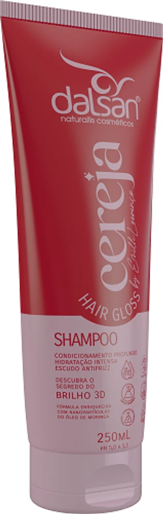 A Linha Cereja Hair Gloss by Emilli Lourenço é a junção de ativos tecnológicos que proporcionam brilho tridimensional, condicionamento, hidratação e ação antifrizz. Possui óleo de moringa, rico em vitaminas A, C e E, ômegas 3, 6 e 9, nutrientes e antioxidantes. O extrato de cereja ajuda a manter a hidratação e brilho capilar.