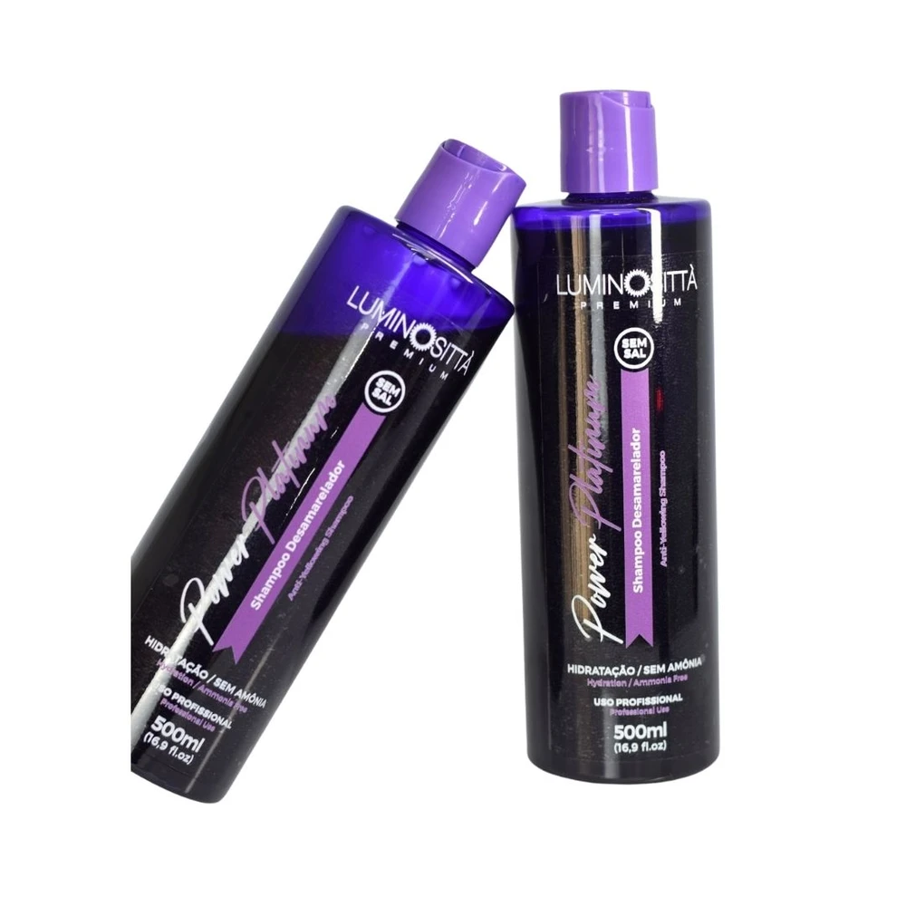 Aplique uma pequena quantidade massageando bem mecha a mecha.Pause por 2 a 5 minutos e enxágue bem. Repita a operaçãos se considerar necessário. Finalize com o condicionador desamarelador lumi platinum luminossittá.
