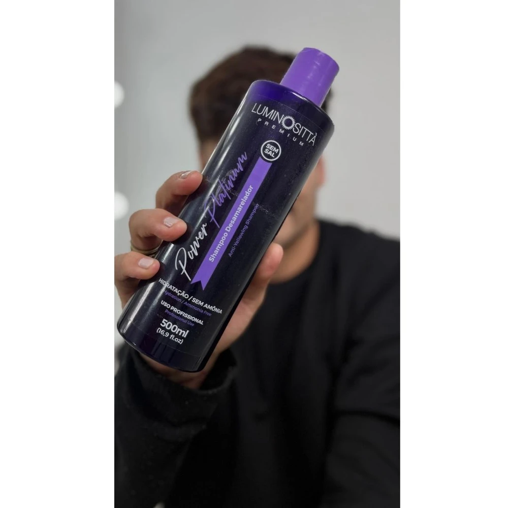 Shampoo desamarelador lumi platinum luminosittá especialmente indicado para neutralizar os tons amarelados indesejados em cabelos louros, descoloridos, grisalhos e com luzes ou mechas. Auxilia na manutenção de tons claros platinados.Doa tons mais luminosos e platinados, reavivando o brilho dos fios sem ressecar.